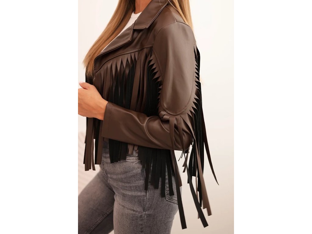 Dámska kožená bunda Forina – moderná bunda so strapcami pre štýlový look