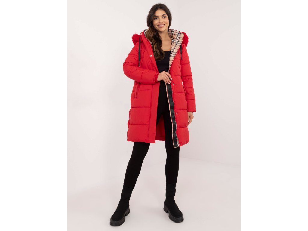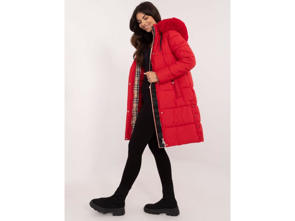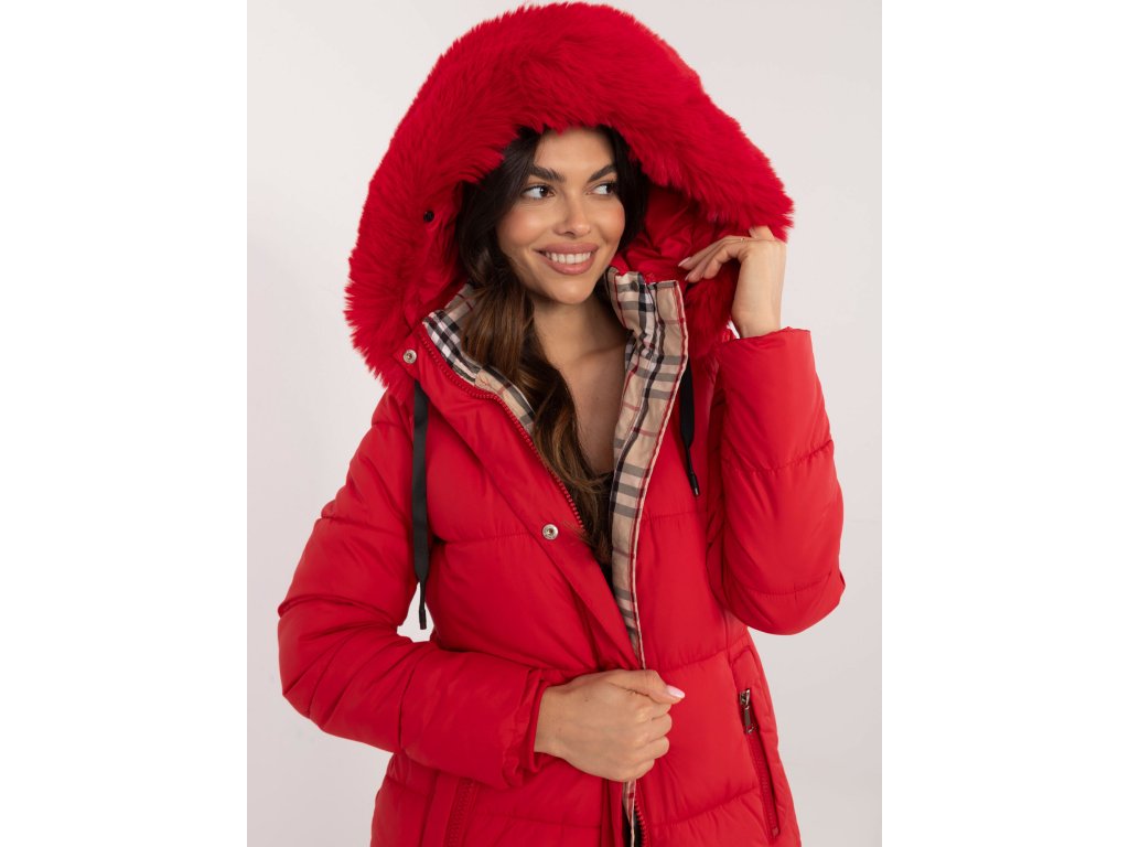 Dámska zimná bunda s kapucňou Kiris červená- elegantná bunda na zimu
