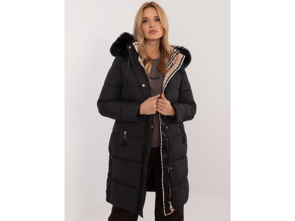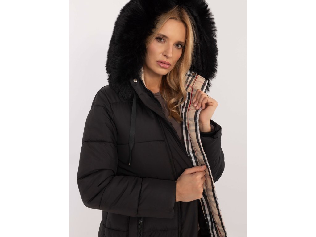 Bunda má dve bočné vrecká, stojačik ku krku, sťahujúce šnúrky na kapucni a povolovacie nity po bokoch, ktoré umožňujú prispôsobiť strih podľa potreby. Károvaná podšívka jej dodáva štýlový kontrastný detail. Vďaka kvalitnému zatepleniu syntetickým vláknom je bunda hrejivá, pohodlná a ideálna do chladného zimného počasia. Perfektná na každodenné nosenie aj do elegantných zimných outfitov.