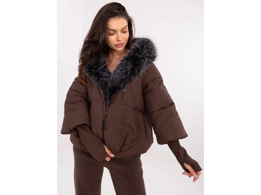 Dámska zimná bunda s kožušinou Honiss hnedá (Farba hnedá, Veľkosť S)