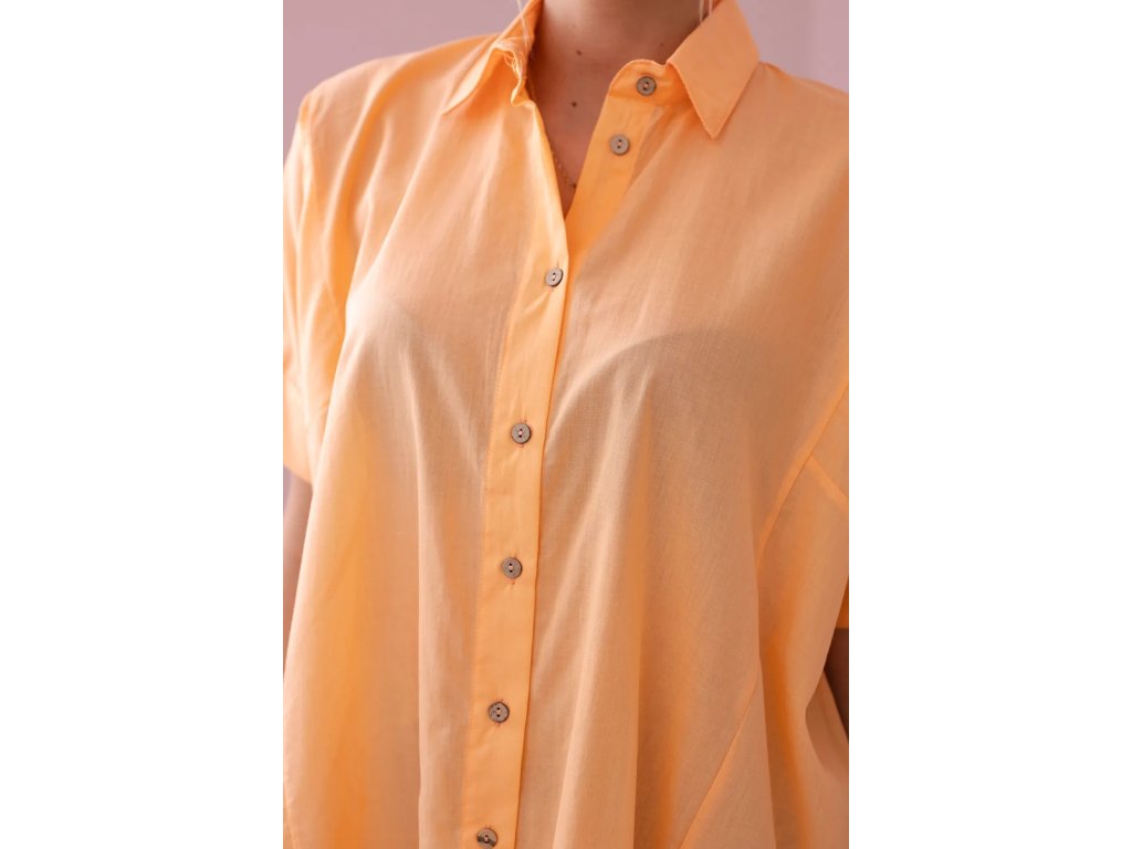 Dámska blúzka Osia je šitá vo voľnom oversize strihu doplnená gombíkovou légou, ktorá zabezpečí pohodlné obliekanie a vyzliekanie. Rovnako vám umožní prispôsobiť hĺbku výstrihu podľa požiadaviek. Blúzka má krátke rukávy, ktoré podčiarkujú jej ležérny charakter. Použitý materiál zo 100% bavlny je príjemný na nosenie, ľahký, vzdušný a navyše vhodný aj pre alergikov. Na letné dni si nič lepšie ani nemôžete priať.Blúzka do casual outfitov