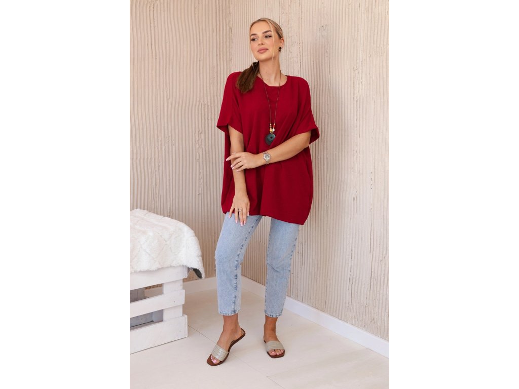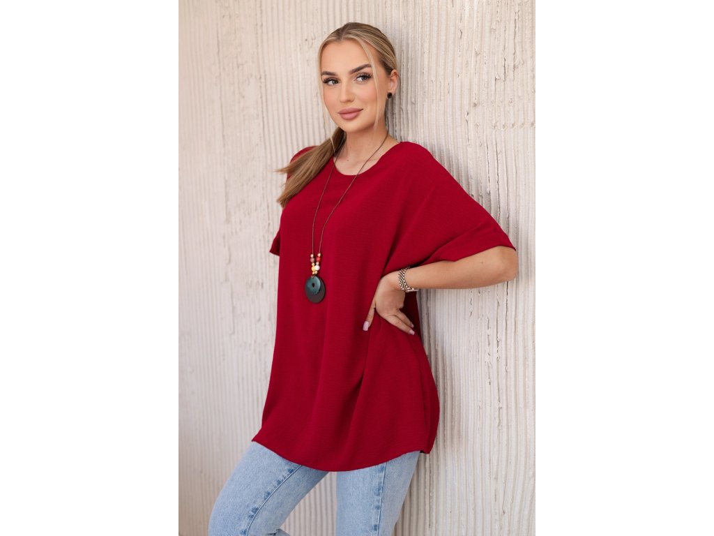 Blúzka má oversize strih s krátkymi rukávmi v prinechanom strihu. Celkový dizajn dopĺňa efektný dlhý prívesok, ktorý podčiarkuje celkový uvoľnený ráz tohto modelu. Použitý materiál s prímesou viskózy je ľahký, vzdušný, nekrčivý a dobre saje pot. Navyše je aj príjemne chladivý, čo v kombinácii s voľným strihom podčiarkuje vhodnosť tohto modelu do letných outfitov.Výhody dámskej blúzky Vera
