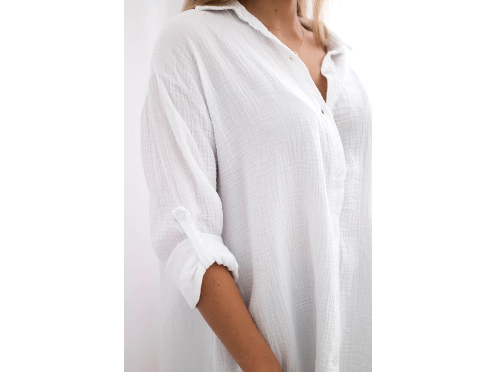 Dámska košeľa Sappy je stelesnením pohodlia a nadčasovej elegancie. Košeľa je vyrobená z ľahkého, priedušného bavlneného mušelínu vďaka čomu je ideálna do každého ročného obdobia. Poskytuje pohodlie pri nosení a voľnosť pohybu. Jej univerzálny strih ju robí vhodnou na každodenné nosenie. Jemná štruktúra materiálu dodáva jemný šarm a precízne spracovanie zdôrazňuje vysokú kvalitu prevedenia. Mušelínová košeľa je povinnou súčasťou šatníka pre tie ženy, ktoré oceňujú kombináciu klasiky a moderného štýlu. Vďaka oversized strihu je blúzka neuveriteľne všestranná – môžete ju nosiť voľne, previazanú opaskom alebo ľahko zviazanú pod prsiami. Košeľa sa perfektne hodí k džínsom aj elegantným nohaviciam či sukni, takže bude fungovať v mnohých štýloch - od každodenných až po sofistikovanejšie. Jemná štruktúra mušelínu jej dodáva jemnú eleganciu a prírodná bavlna umožňuje pokožke dýchať. Za ná táto blúzka nesmie chýbať v každom dámskom šatníku – klasická, pohodlná a nadčasová. Ideálna na každé ročné obdobie a je vhodná na vrstvenie či už bundou, alebo kardiganom.Kľúčové výhody dámskej košele: