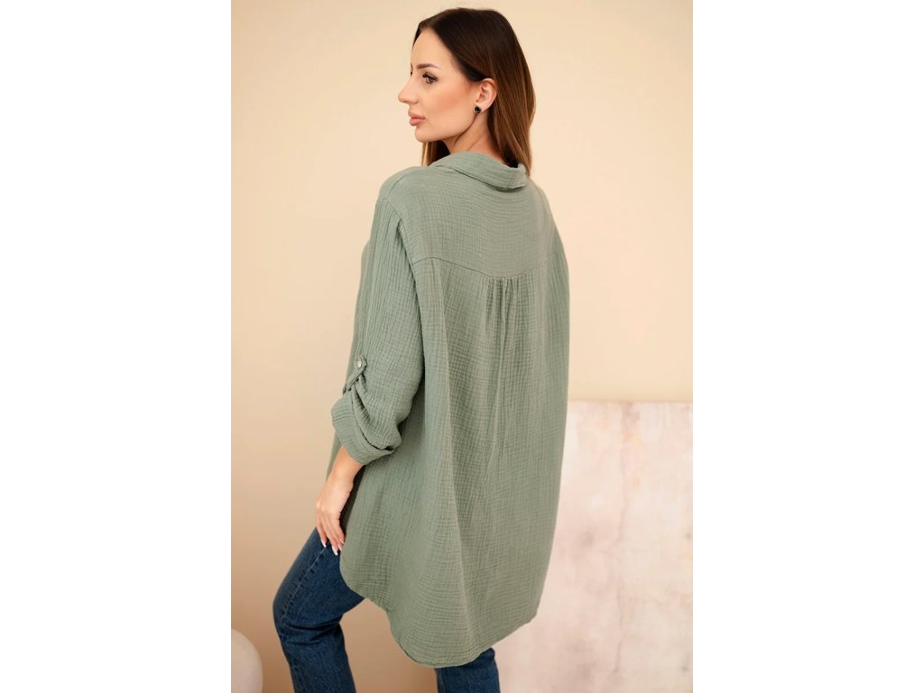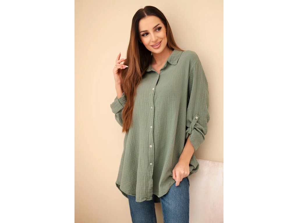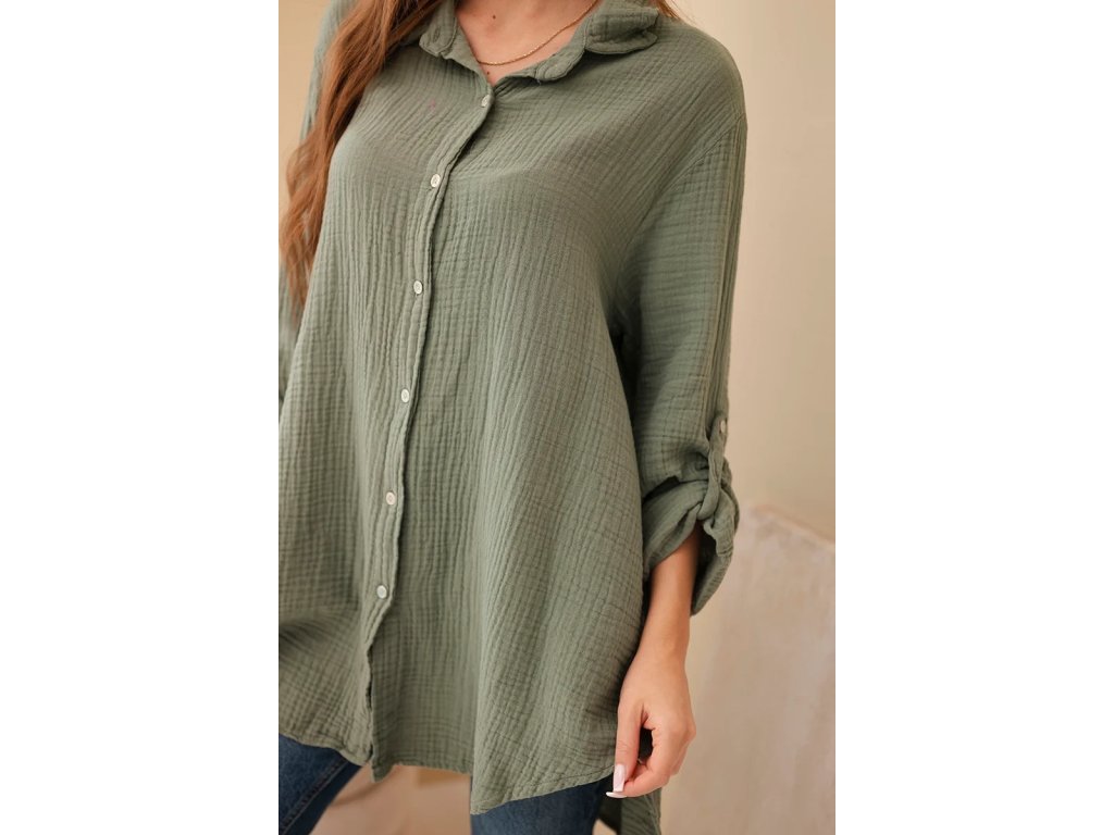 Dámska košeľa Sappy je stelesnením pohodlia a nadčasovej elegancie. Košeľa je vyrobená z ľahkého, priedušného bavlneného mušelínu vďaka čomu je ideálna do každého ročného obdobia. Poskytuje pohodlie pri nosení a voľnosť pohybu. Jej univerzálny strih ju robí vhodnou na každodenné nosenie. Jemná štruktúra materiálu dodáva jemný šarm a precízne spracovanie zdôrazňuje vysokú kvalitu prevedenia. Mušelínová košeľa je povinnou súčasťou šatníka pre tie ženy, ktoré oceňujú kombináciu klasiky a moderného štýlu. Vďaka oversized strihu je blúzka neuveriteľne všestranná – môžete ju nosiť voľne, previazanú opaskom alebo ľahko zviazanú pod prsiami. Košeľa sa perfektne hodí k džínsom aj elegantným nohaviciam či sukni, takže bude fungovať v mnohých štýloch - od každodenných až po sofistikovanejšie. Jemná štruktúra mušelínu jej dodáva jemnú eleganciu a prírodná bavlna umožňuje pokožke dýchať. Za ná táto blúzka nesmie chýbať v každom dámskom šatníku – klasická, pohodlná a nadčasová. Ideálna na každé ročné obdobie a je vhodná na vrstvenie či už bundou, alebo kardiganom.Kľúčové výhody dámskej košele: