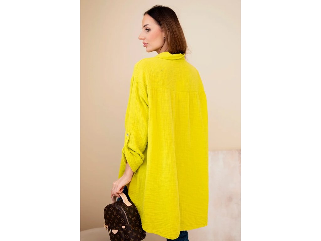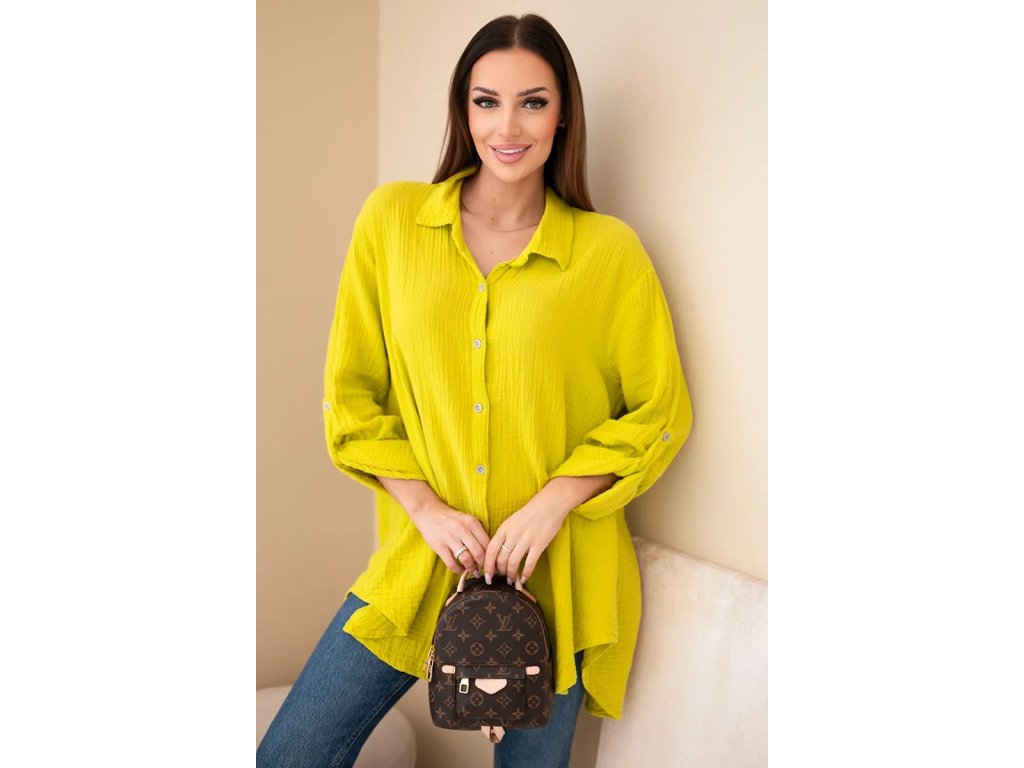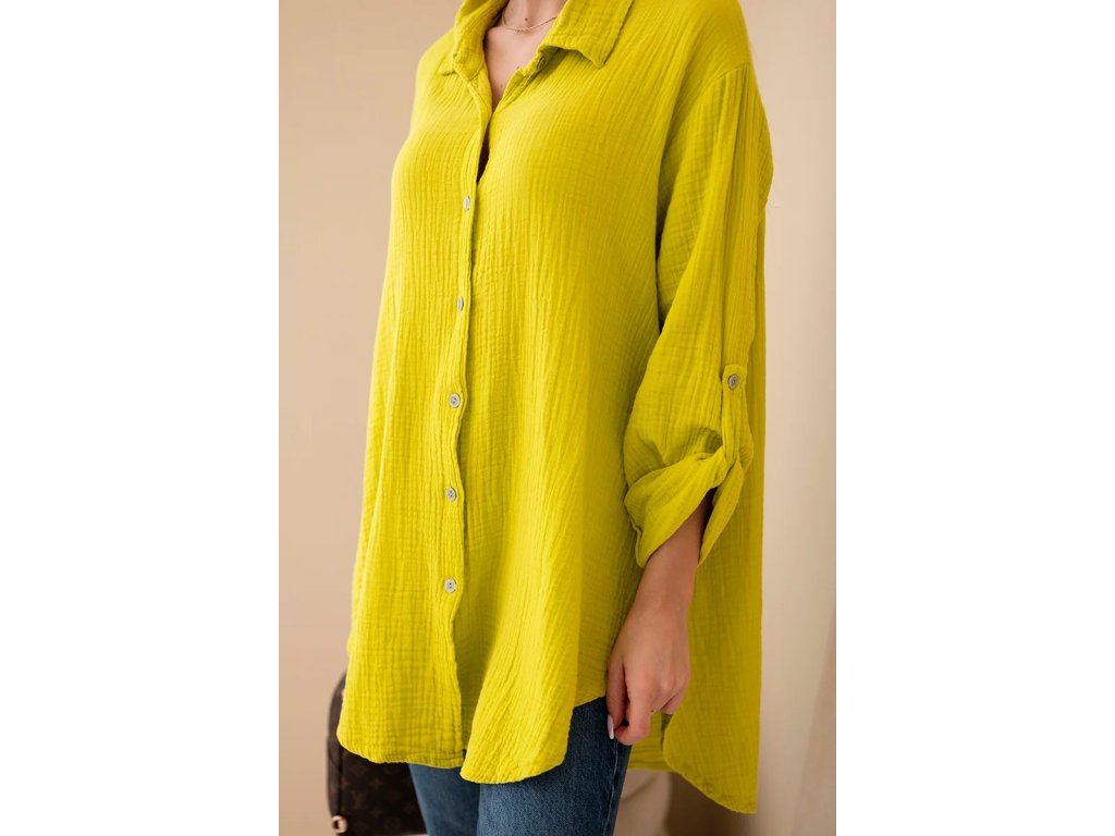 Dámska košeľa Sappy je stelesnením pohodlia a nadčasovej elegancie. Košeľa je vyrobená z ľahkého, priedušného bavlneného mušelínu vďaka čomu je ideálna do každého ročného obdobia. Poskytuje pohodlie pri nosení a voľnosť pohybu. Jej univerzálny strih ju robí vhodnou na každodenné nosenie. Jemná štruktúra materiálu dodáva jemný šarm a precízne spracovanie zdôrazňuje vysokú kvalitu prevedenia. Mušelínová košeľa je povinnou súčasťou šatníka pre tie ženy, ktoré oceňujú kombináciu klasiky a moderného štýlu. Vďaka oversized strihu je blúzka neuveriteľne všestranná – môžete ju nosiť voľne, previazanú opaskom alebo ľahko zviazanú pod prsiami. Košeľa sa perfektne hodí k džínsom aj elegantným nohaviciam či sukni, takže bude fungovať v mnohých štýloch - od každodenných až po sofistikovanejšie. Jemná štruktúra mušelínu jej dodáva jemnú eleganciu a prírodná bavlna umožňuje pokožke dýchať. Za ná táto blúzka nesmie chýbať v každom dámskom šatníku – klasická, pohodlná a nadčasová. Ideálna na každé ročné obdobie a je vhodná na vrstvenie či už bundou, alebo kardiganom.Kľúčové výhody dámskej košele: