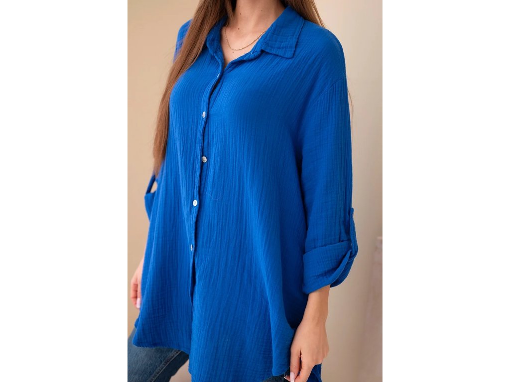 Dámska košeľa Sappy je stelesnením pohodlia a nadčasovej elegancie. Košeľa je vyrobená z ľahkého, priedušného bavlneného mušelínu vďaka čomu je ideálna do každého ročného obdobia. Poskytuje pohodlie pri nosení a voľnosť pohybu. Jej univerzálny strih ju robí vhodnou na každodenné nosenie. Jemná štruktúra materiálu dodáva jemný šarm a precízne spracovanie zdôrazňuje vysokú kvalitu prevedenia. Mušelínová košeľa je povinnou súčasťou šatníka pre tie ženy, ktoré oceňujú kombináciu klasiky a moderného štýlu. Vďaka oversized strihu je blúzka neuveriteľne všestranná – môžete ju nosiť voľne, previazanú opaskom alebo ľahko zviazanú pod prsiami. Košeľa sa perfektne hodí k džínsom aj elegantným nohaviciam či sukni, takže bude fungovať v mnohých štýloch - od každodenných až po sofistikovanejšie. Jemná štruktúra mušelínu jej dodáva jemnú eleganciu a prírodná bavlna umožňuje pokožke dýchať. Za ná táto blúzka nesmie chýbať v každom dámskom šatníku – klasická, pohodlná a nadčasová. Ideálna na každé ročné obdobie a je vhodná na vrstvenie či už bundou, alebo kardiganom.Kľúčové výhody dámskej košele: