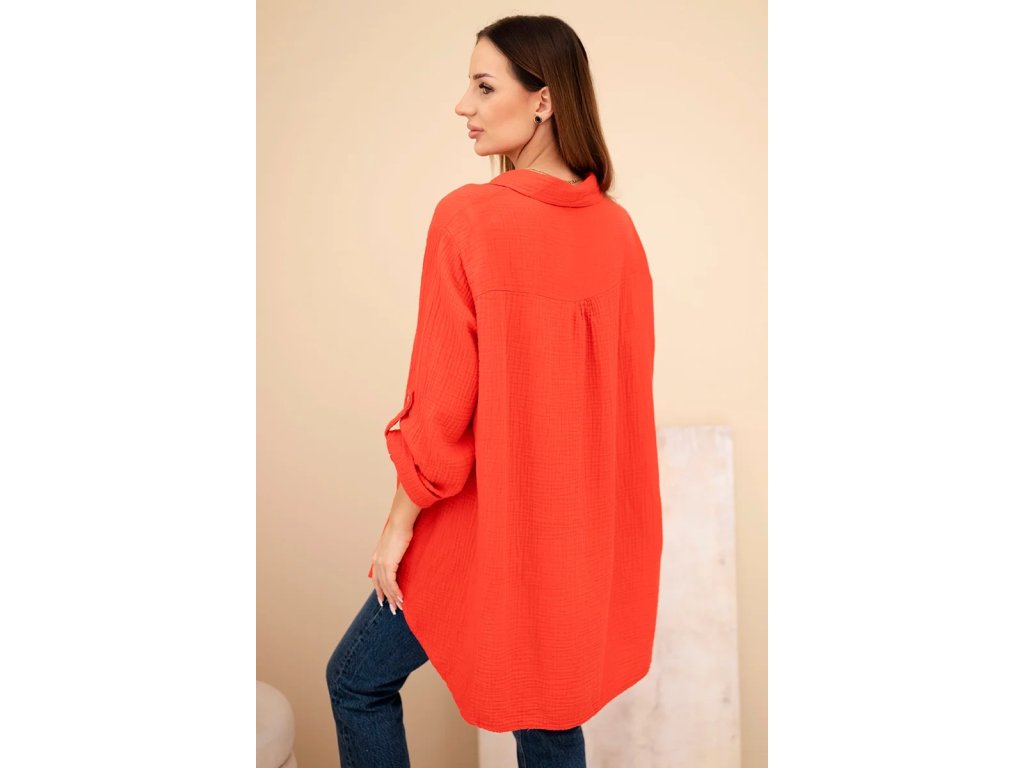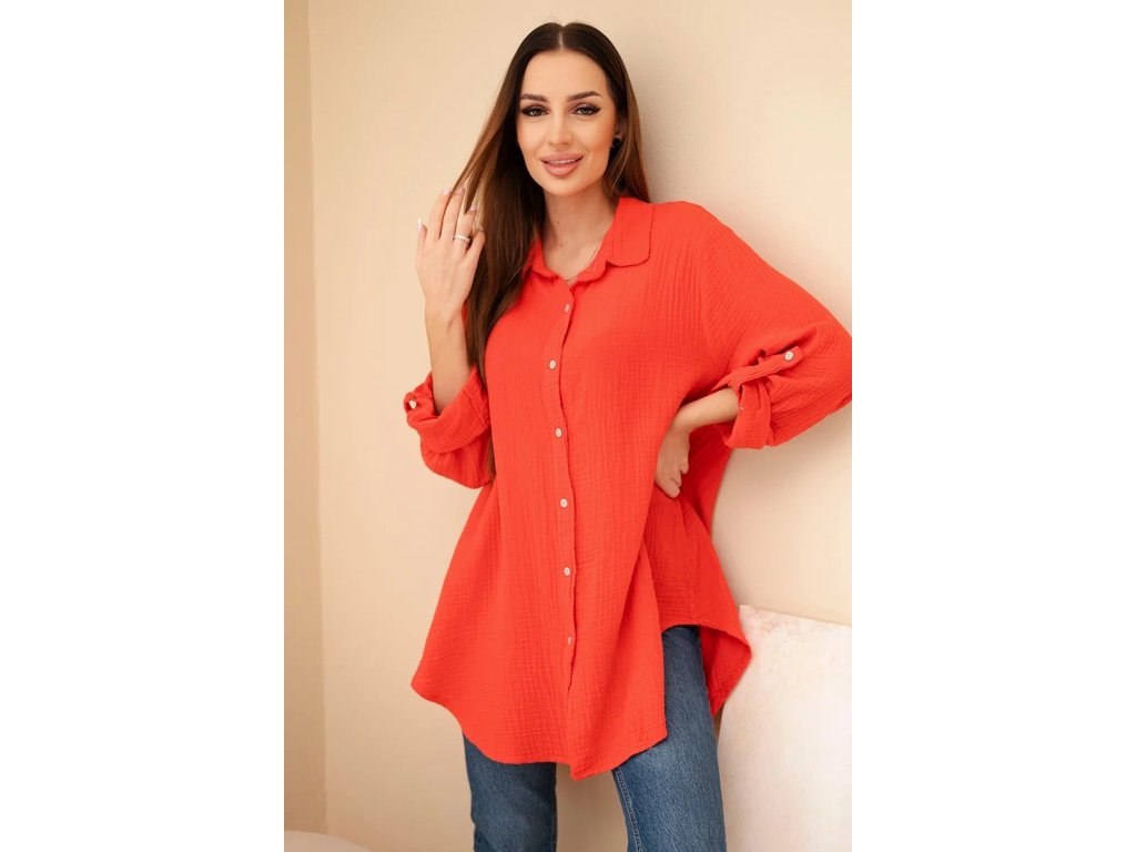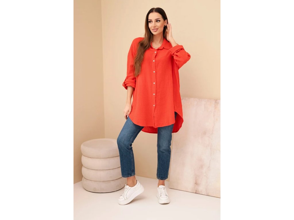 Dámska košeľa Sappy je stelesnením pohodlia a nadčasovej elegancie. Košeľa je vyrobená z ľahkého, priedušného bavlneného mušelínu vďaka čomu je ideálna do každého ročného obdobia. Poskytuje pohodlie pri nosení a voľnosť pohybu. Jej univerzálny strih ju robí vhodnou na každodenné nosenie. Jemná štruktúra materiálu dodáva jemný šarm a precízne spracovanie zdôrazňuje vysokú kvalitu prevedenia. Mušelínová košeľa je povinnou súčasťou šatníka pre tie ženy, ktoré oceňujú kombináciu klasiky a moderného štýlu. Vďaka oversized strihu je blúzka neuveriteľne všestranná – môžete ju nosiť voľne, previazanú opaskom alebo ľahko zviazanú pod prsiami. Košeľa sa perfektne hodí k džínsom aj elegantným nohaviciam či sukni, takže bude fungovať v mnohých štýloch - od každodenných až po sofistikovanejšie. Jemná štruktúra mušelínu jej dodáva jemnú eleganciu a prírodná bavlna umožňuje pokožke dýchať. Za ná táto blúzka nesmie chýbať v každom dámskom šatníku – klasická, pohodlná a nadčasová. Ideálna na každé ročné obdobie a je vhodná na vrstvenie či už bundou, alebo kardiganom.Kľúčové výhody dámskej košele: