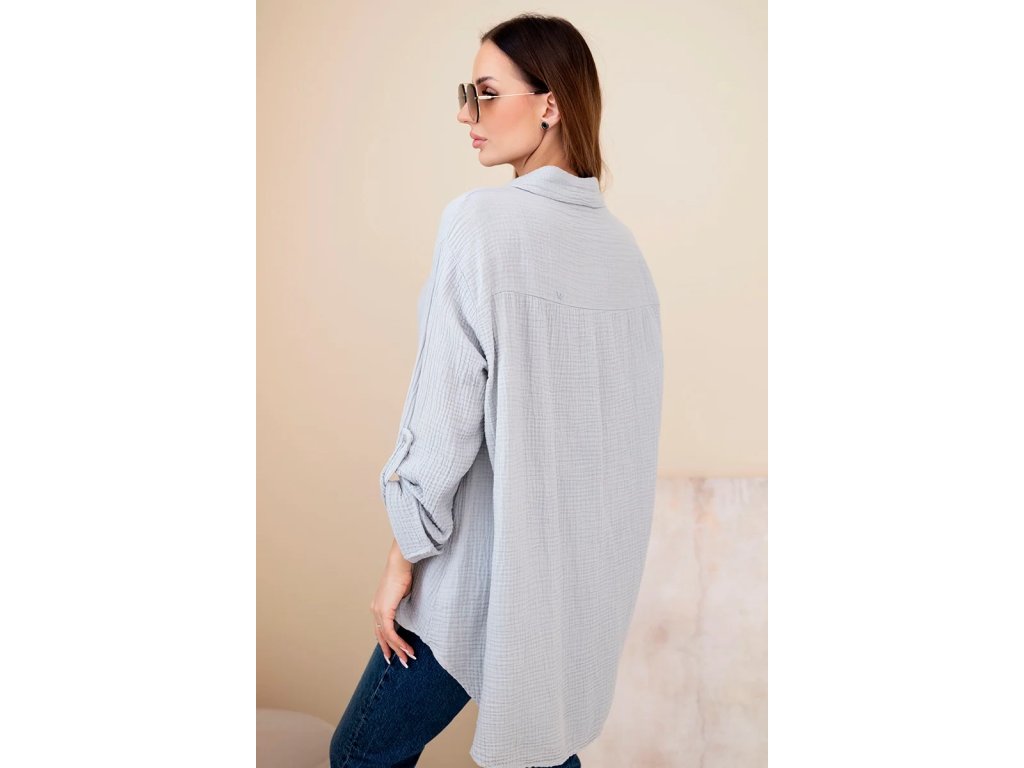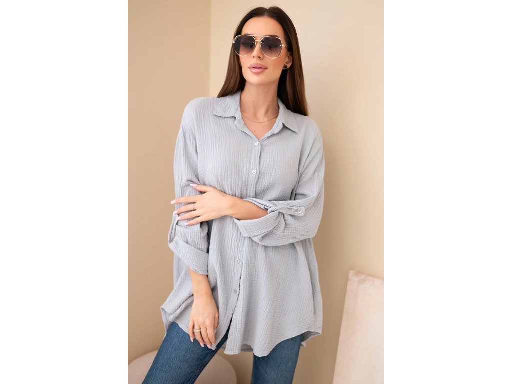 Dámska košeľa Sappy je stelesnením pohodlia a nadčasovej elegancie. Košeľa je vyrobená z ľahkého, priedušného bavlneného mušelínu vďaka čomu je ideálna do každého ročného obdobia. Poskytuje pohodlie pri nosení a voľnosť pohybu. Jej univerzálny strih ju robí vhodnou na každodenné nosenie. Jemná štruktúra materiálu dodáva jemný šarm a precízne spracovanie zdôrazňuje vysokú kvalitu prevedenia. Mušelínová košeľa je povinnou súčasťou šatníka pre tie ženy, ktoré oceňujú kombináciu klasiky a moderného štýlu. Vďaka oversized strihu je blúzka neuveriteľne všestranná – môžete ju nosiť voľne, previazanú opaskom alebo ľahko zviazanú pod prsiami. Košeľa sa perfektne hodí k džínsom aj elegantným nohaviciam či sukni, takže bude fungovať v mnohých štýloch - od každodenných až po sofistikovanejšie. Jemná štruktúra mušelínu jej dodáva jemnú eleganciu a prírodná bavlna umožňuje pokožke dýchať. Za ná táto blúzka nesmie chýbať v každom dámskom šatníku – klasická, pohodlná a nadčasová. Ideálna na každé ročné obdobie a je vhodná na vrstvenie či už bundou, alebo kardiganom.Kľúčové výhody dámskej košele: