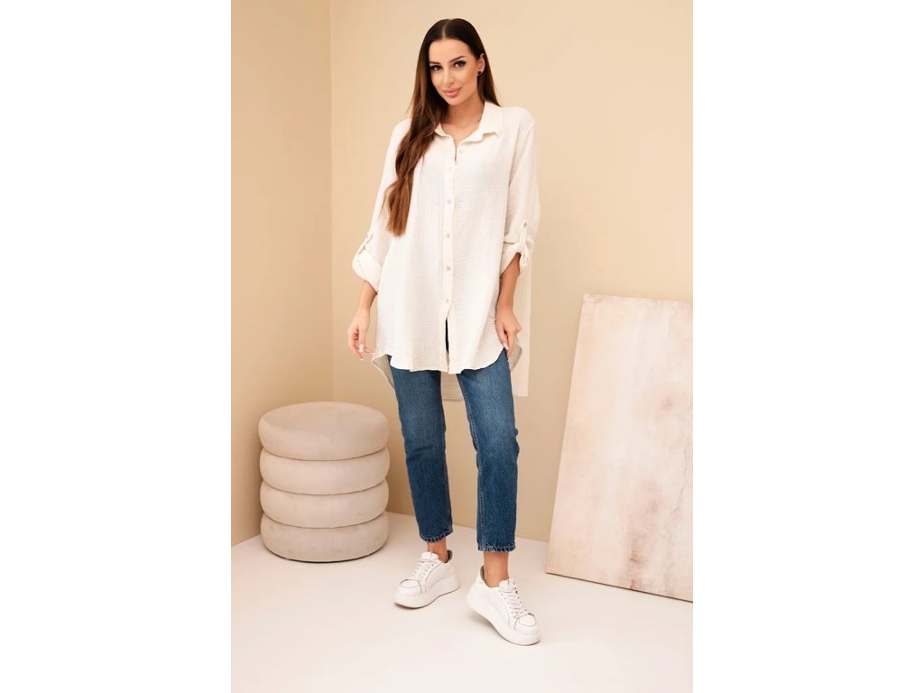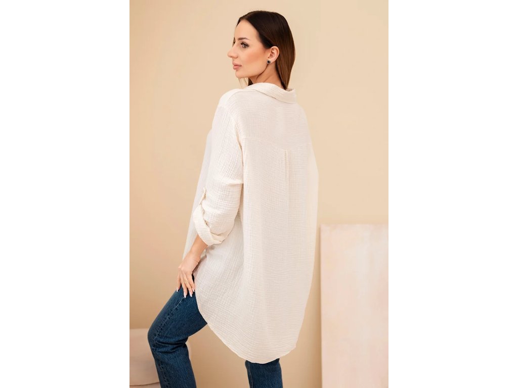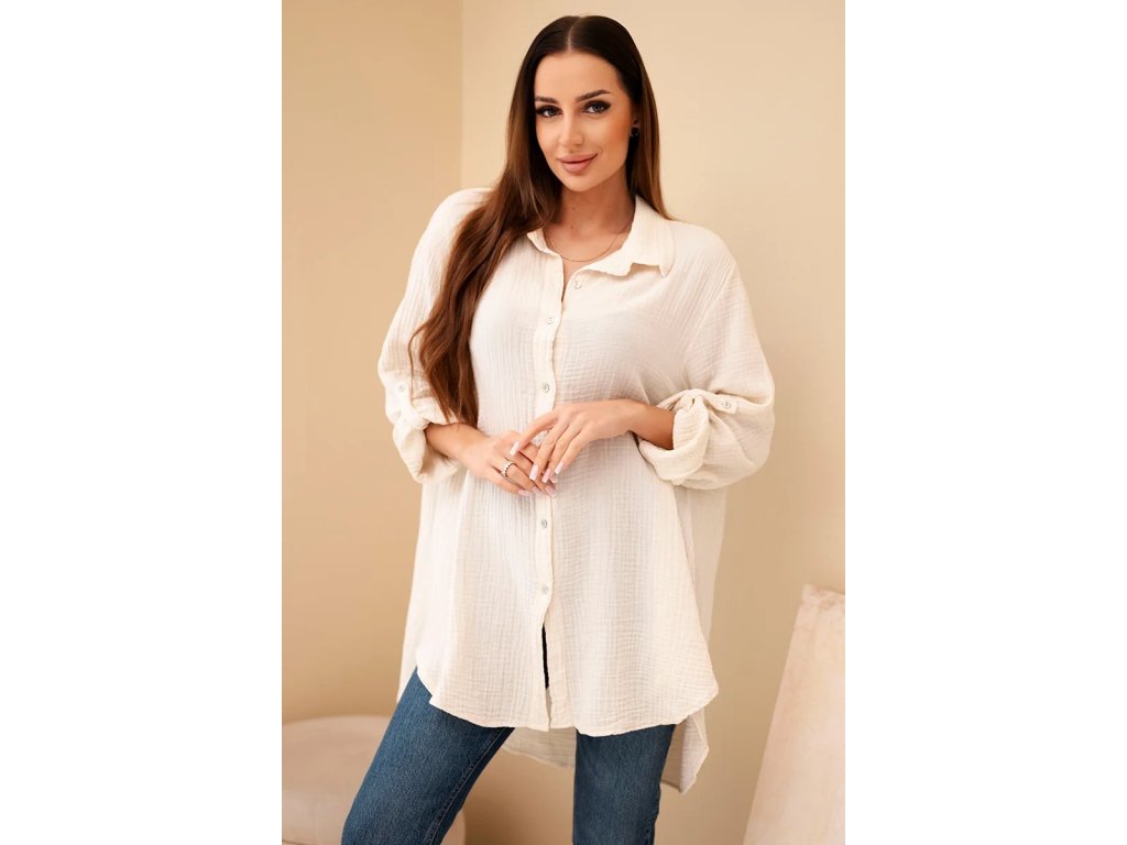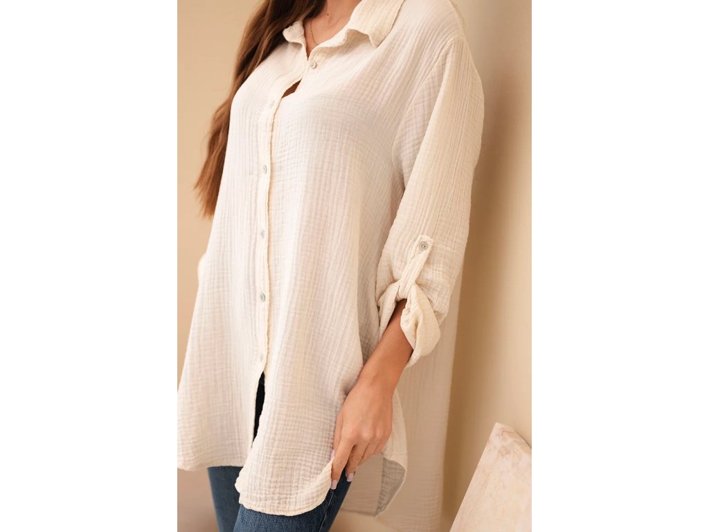 Dámska košeľa Sappy je stelesnením pohodlia a nadčasovej elegancie. Košeľa je vyrobená z ľahkého, priedušného bavlneného mušelínu vďaka čomu je ideálna do každého ročného obdobia. Poskytuje pohodlie pri nosení a voľnosť pohybu. Jej univerzálny strih ju robí vhodnou na každodenné nosenie. Jemná štruktúra materiálu dodáva jemný šarm a precízne spracovanie zdôrazňuje vysokú kvalitu prevedenia. Mušelínová košeľa je povinnou súčasťou šatníka pre tie ženy, ktoré oceňujú kombináciu klasiky a moderného štýlu. Vďaka oversized strihu je blúzka neuveriteľne všestranná – môžete ju nosiť voľne, previazanú opaskom alebo ľahko zviazanú pod prsiami. Košeľa sa perfektne hodí k džínsom aj elegantným nohaviciam či sukni, takže bude fungovať v mnohých štýloch - od každodenných až po sofistikovanejšie. Jemná štruktúra mušelínu jej dodáva jemnú eleganciu a prírodná bavlna umožňuje pokožke dýchať. Za ná táto blúzka nesmie chýbať v každom dámskom šatníku – klasická, pohodlná a nadčasová. Ideálna na každé ročné obdobie a je vhodná na vrstvenie či už bundou, alebo kardiganom.Kľúčové výhody dámskej košele: