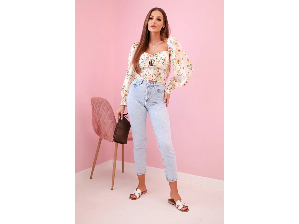 - Dlhé rukávy ukončené romantickým volánom – dodávajú blúzke hravosť a šarm
