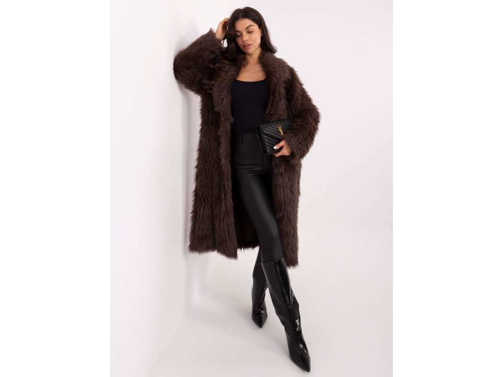 Dámska dlhá kožušinová bunda Perlos hnedá (Farba hnedá, Veľkosť univerzálna)
