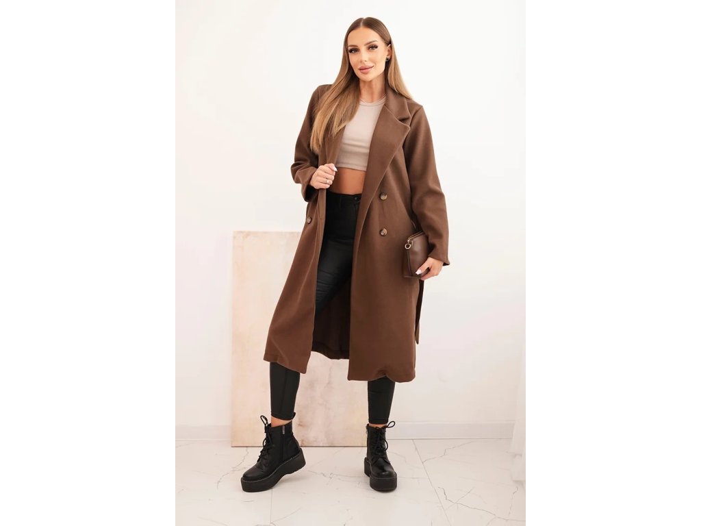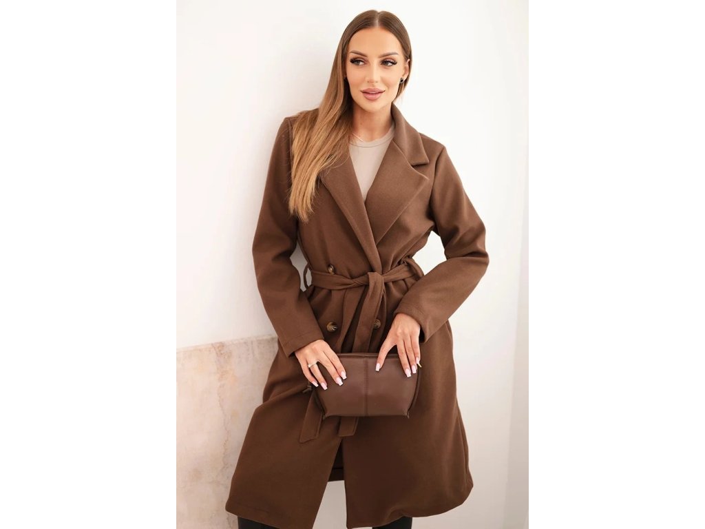Elegantný dámsky kabát Pusi je štýlovým základom jesenného šatníka. Predĺžená dĺžka pod kolená a dvojradové zapínanie doplnené viazaním v páse krásne zvýraznia ženskú siluetu. Praktické bočné vrecká a kvalitná podšívka zaručia pohodlie pri každodennom nosení.Kabát je vyrobený z príjemného elastického materiálu, ktorý je mäkký, poddajný a komfortný k pokožke. Ideálny prechodný kabát na jesenné dni do práce, do mesta či na voľný čas. Jednoducho ho skombinujete k rifliam, nohaviciam aj elegantnej sukni.