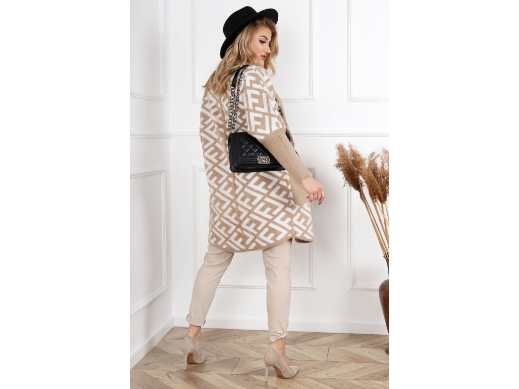 Trendový dámsky kabát v nápaditom prevedení s geometrickým vzorom dokonale vynikne v športovom či ležérnom štýle s minimalistickými kúskami. Okrem toho, že vás poteší dizajnom dokáže vás aj príjemne zahriať v chladných dňoch nakoľko je vyrobený zo zmesy vlny a angory Kabát má oversize strih s veľkými nakladanými vreckami, zúženými rukávymi a zapínaním na skrytý patent.
