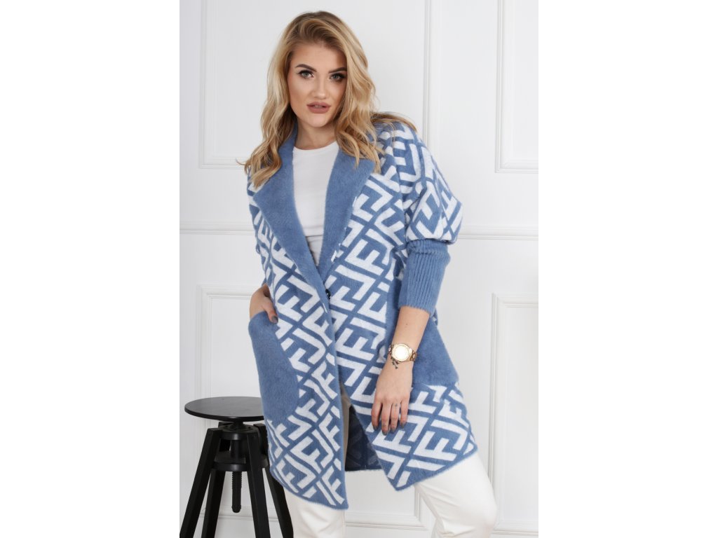 Trendový dámsky kabát v nápaditom prevedení s geometrickým vzorom dokonale vynikne v športovom či ležérnom štýle s minimalistickými kúskami. Okrem toho, že vás poteší dizajnom dokáže vás aj príjemne zahriať v chladných dňoch nakoľko je vyrobený zo zmesy vlny a angory Kabát má oversize strih s veľkými nakladanými vreckami, zúženými rukávymi a zapínaním na skrytý patent.