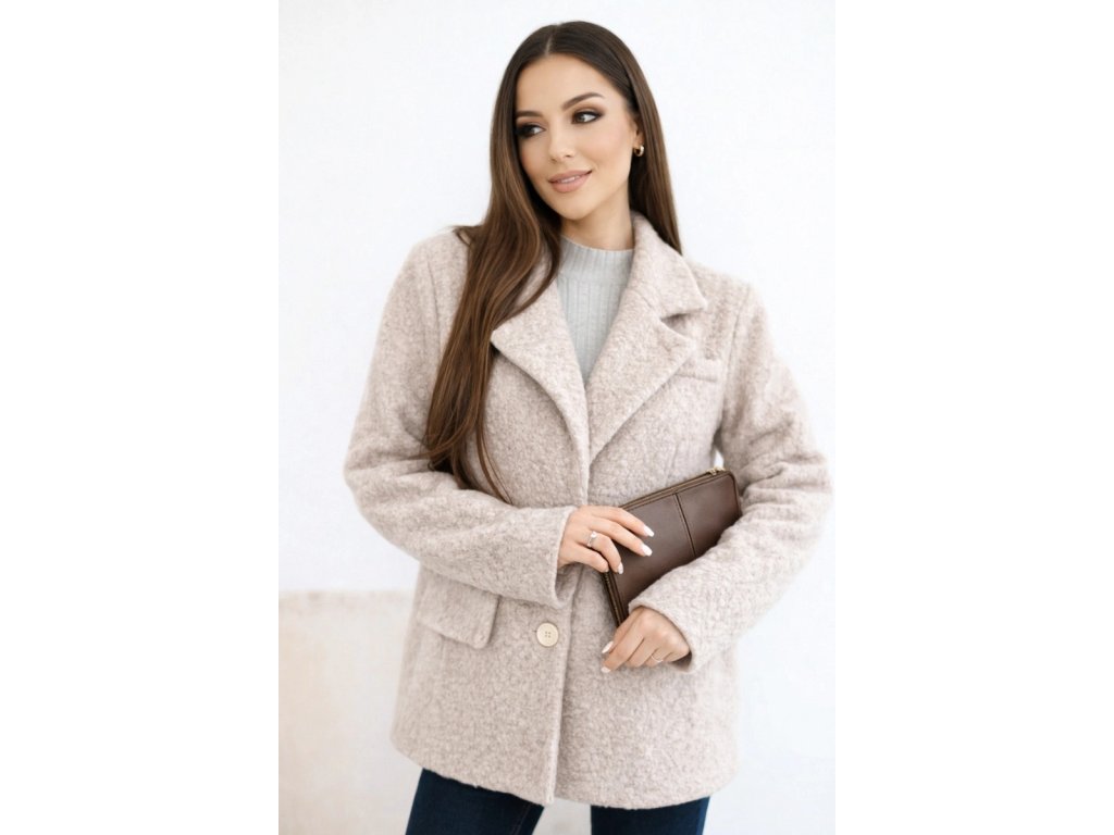 Dámsky prechodný kabát Greta je kúskom, ktorý si zamilujete v momente, keď ho prvýkrát oblečiete. Moderný vlnený vzhľad pripomínajúci ovčiu vlnu pôsobí luxusne,hrejivo a zároveň veľmi štýlovo. Jemná jarná farba rozjasní každý outfit a dodá mu sviežosť, ktorú oceníte počas jarných aj jesenných dní. Klasický strih krásne zvýrazňuje postavu a vytvára elegantnú siluetu bez zbytočnej strohosti.Véčkový výstrih s klopami v štýle saka dodáva kabátu nadčasový a sofistikovaný vzhľad. Zapínanie na gombíky pôsobí čisto a moderne, dve bočné vrecká zabezpečia praktickosť pri každodennom nosení. Kabát je podšitý, príjemne hrejivý a pohodlný, takže sa v ňom budete cítiť komfortne aj počas chladnejších rán.
