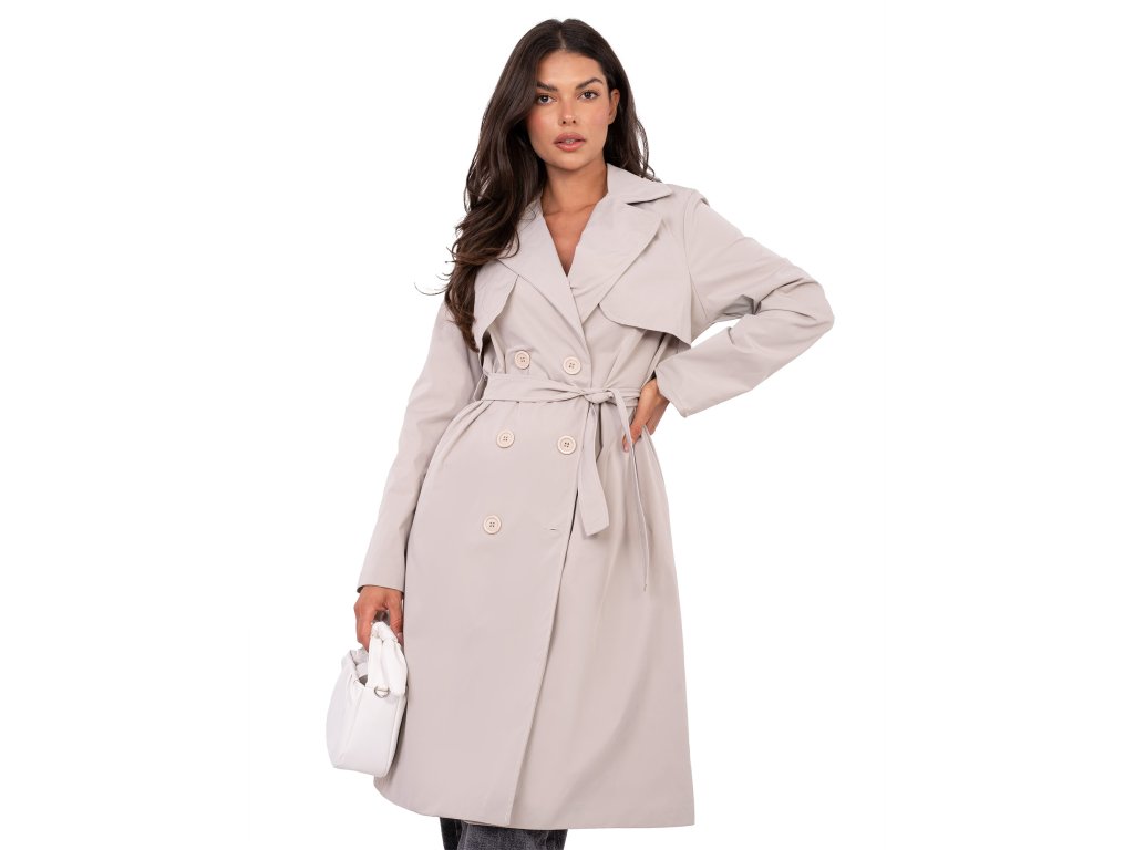 Dámsky prechodný kabát Kony je štýlový a elegantný dámsky trenčkot, ideálny na jar a jeseň. Kabát siaha po kolená a ponúka nadčasový strih s praktickým zapínaním na gombíky a viazaním v páse, ktoré umožňuje krásne prispôsobenie postave. Efektné manžety na koncoch rukávov a dve bočné vrecká podčiarkujú elegantný a zároveň funkčný dizajn.Kabát Kony je podšitý, ľahký a pohodlný, takže je ideálny na bežné nosenie aj ako trendový kabát do práce. Spolu s blúzkou a nohavicami vynikajúco doplní elegantné outfity, no hodí sa aj k casual kombináciám s rifľami a svetrom. Dokonalý look vyčaríte aj v kombinácii so šatami. Dámsky jarný kabát Kony je jednoducho perfektným kúskom do prechodného obdobia, ktorý spája štýl a praktickosť.