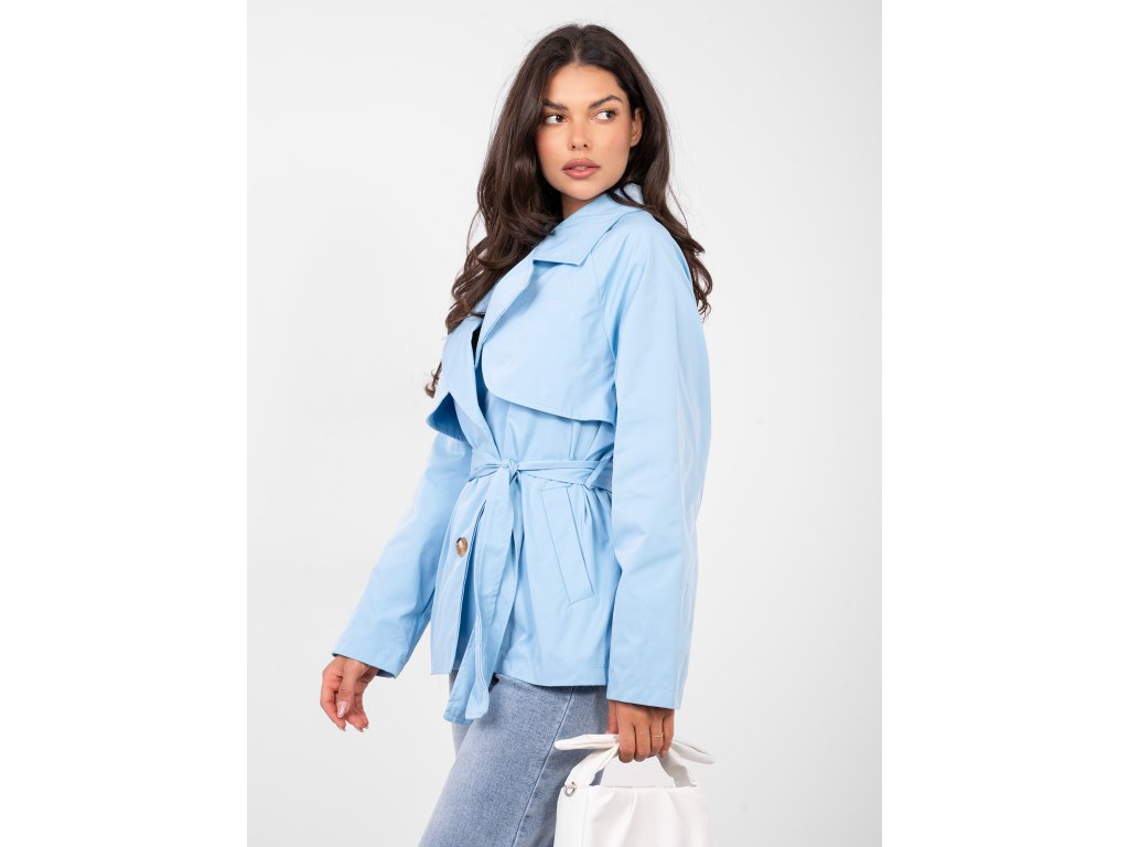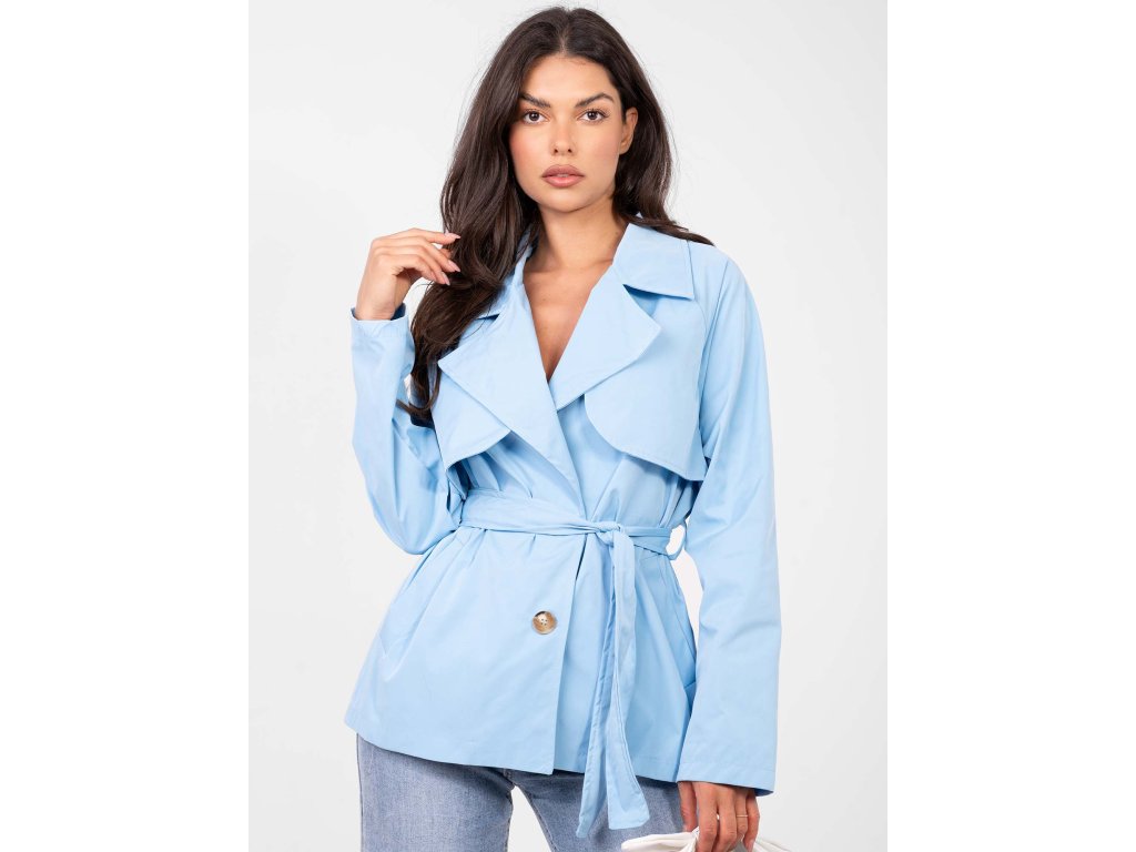 Dámsky prechodný kabát Maxa -modrý krátky trenčkot na jarné dni