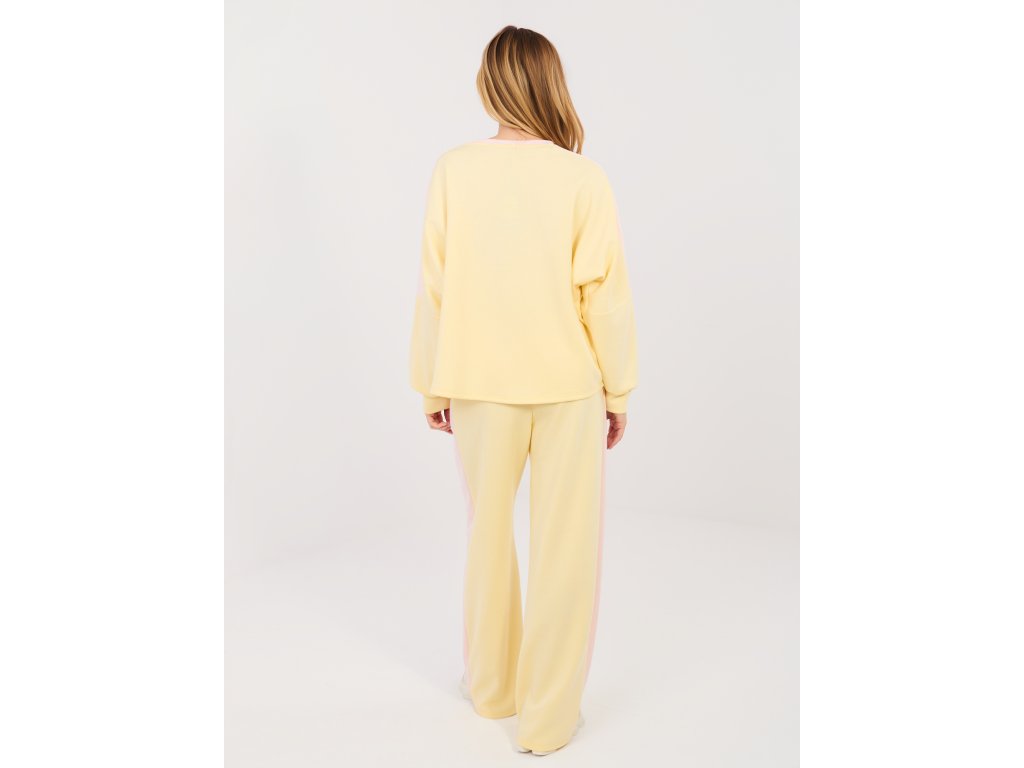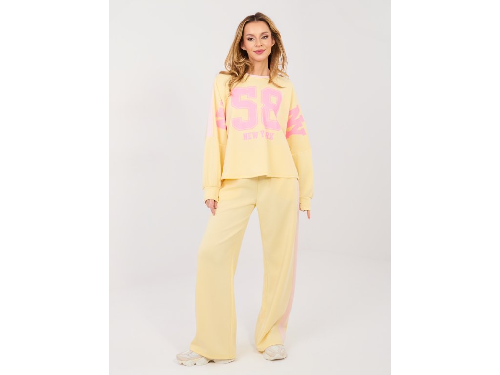 Dámska tepláková súprava Cumi je dôkazom, že pohodlie a štýl môžu ísť ruka v ruke. Oversize strih Vám dopraje voľnosť pohybu a pocit uvoľnenia, zatiaľ čo moderný dizajn s lampasmi po bokoch vytvára trendy vzhľad, ktorý rozhodne neostane bez povšimnutia. Voľné nohavice s gumou v páse a praktickými bočnými vreckami krásne sedia a neobmedzujú, mikina v oversize strihu s výraznou číselnou aplikáciou na prednom diele dodáva súprave moderný mestský charakter. Lampas, ktorý prepája oba diely, vytvára harmonický a premyslený celok.Táto tepláková súprava nie je len o športe. Môžete si ju obliecť do mesta na nákupy, na ihrisko s deťmi, na výlet s kamarátmi alebo vtedy, keď si chcete doma užiť pohodu a zároveň vyzerať upravene a štýlovo. Stačí pridať tričko, tenisky, crossbody kabelku a ľahkú prechodnú bundu a trendy jarný outfit máte hotový. Ak chcete pôsobiť ešte viac fashion, doplňte ju šiltovkou alebo výraznými slnečnými okuliarmi. Vďaka jemným pastelovým farbám pôsobí sviežo, žensky a je ideálnou voľbou na jar, keď túžite po ľahkosti a dobrej nálade.