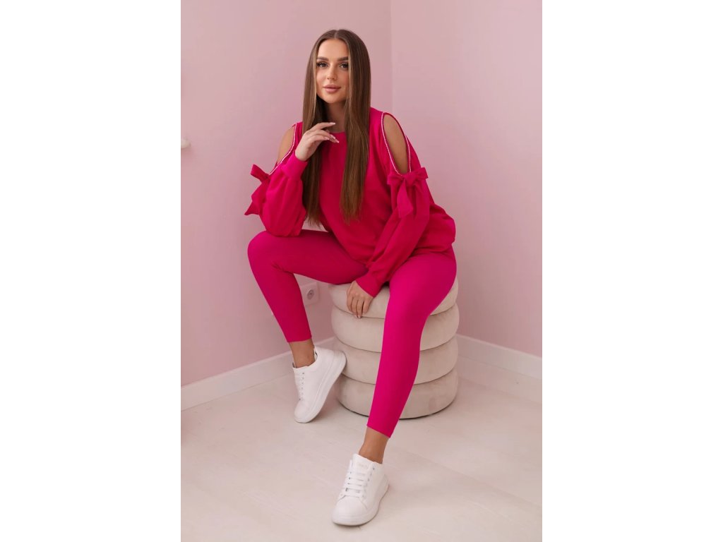 Doprajte si štýl aj počas voľných dní s dámskou teplákovou súpravou Elena, ktorá spája komfort s moderným dizajnom. Táto elegantná tepláková súprava pozostáva z pohodlných legín a oversize mikiny, čím vytvára ideálny outfit na bežné nosenie aj domáci relax.Súprava mikiny s mašľou na rukávoch a legín je pôvabnou a štýlovou ponukou pre ženy, ktoré si cenia pohodlie a módny vzhľad. Mikina s mašličkami na rukávoch dodáva kompletu jemnosť, dievčenský šarm a zároveň prináša do outfitu jedinečný charakter. Legíny sú ušité z príjemného bavlneného materiálu s elastickým pásom, vďaka čomu sa perfektne prispôsobia postave a zaručia maximálne pohodlie.
