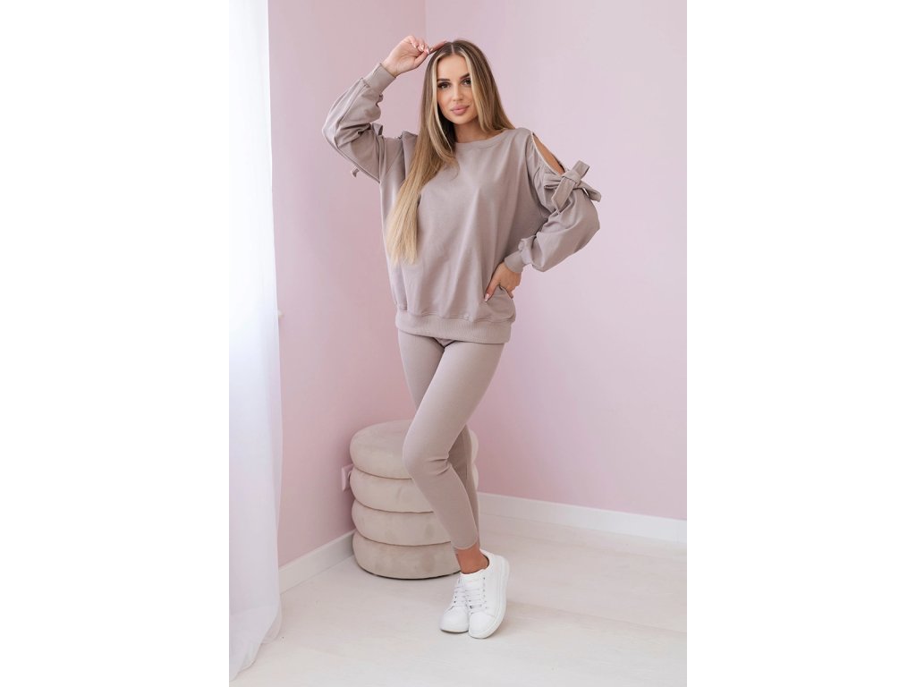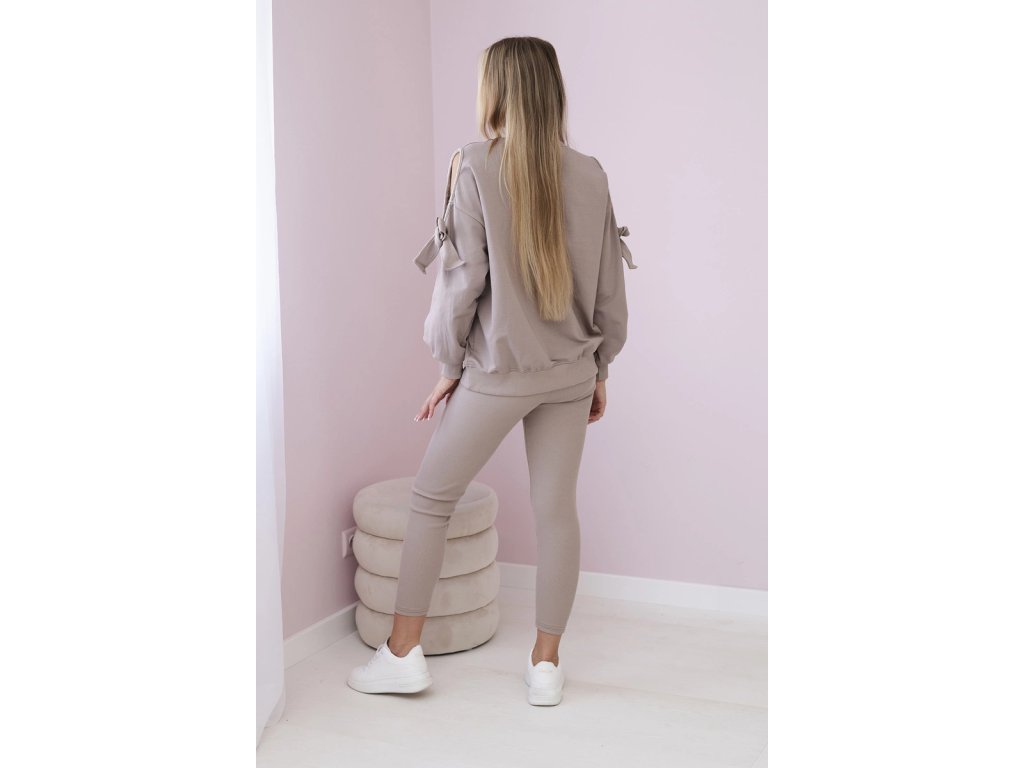 Doprajte si štýl aj počas voľných dní s dámskou teplákovou súpravou Elena, ktorá spája komfort s moderným dizajnom. Táto elegantná tepláková súprava pozostáva z pohodlných legín a oversize mikiny, čím vytvára ideálny outfit na bežné nosenie aj domáci relax.Súprava mikiny s mašľou na rukávoch a legín je pôvabnou a štýlovou ponukou pre ženy, ktoré si cenia pohodlie a módny vzhľad. Mikina s mašličkami na rukávoch dodáva kompletu jemnosť, dievčenský šarm a zároveň prináša do outfitu jedinečný charakter. Legíny sú ušité z príjemného bavlneného materiálu s elastickým pásom, vďaka čomu sa perfektne prispôsobia postave a zaručia maximálne pohodlie.