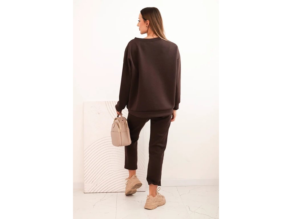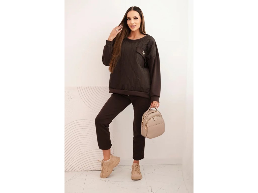 Originálnym detailom je falošné vrecko so štrasovou ozdobou na prsiach, ktoré dodáva súprave nádych luxusu. Vyrobená z príjemného, mäkkého materiálu, ktorý je jemný k pokožke a hrejivý – ideálny do chladnejších dní. Dámsky komplet Foja je skvelou voľbou na voľný čas, cestovanie aj štýlové domáce nosenie.