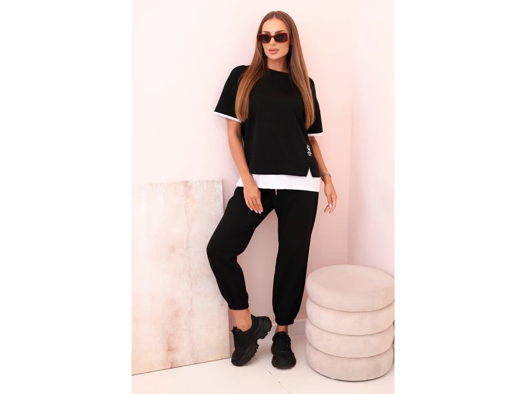 Objavte spojenie pohodlia a štýlu s dámskou teplákovou súpravou Míra, ktorá je ako stvorená na každodenné nosenie, domáce leňošenie, cestovanie aj voľný čas. Táto moderná tepláková súprava vyniká originálnym dizajnom a kvalitným materiálom, ktorý si zamilujete.Tepláková súprava je tvorená teplákmi s dĺžkou po členky, ktoré majú pohodlný elastický pás a dolný lem s gumičkou. Nechýbajú ani praktické bočné vrecká. Vrchný diel tvorí voľná mikina s krátkym rukávom, ktorá zaujme efektom dvojitého vrstvenia, vďaka čomu pôsobí moderne a štýlovo.