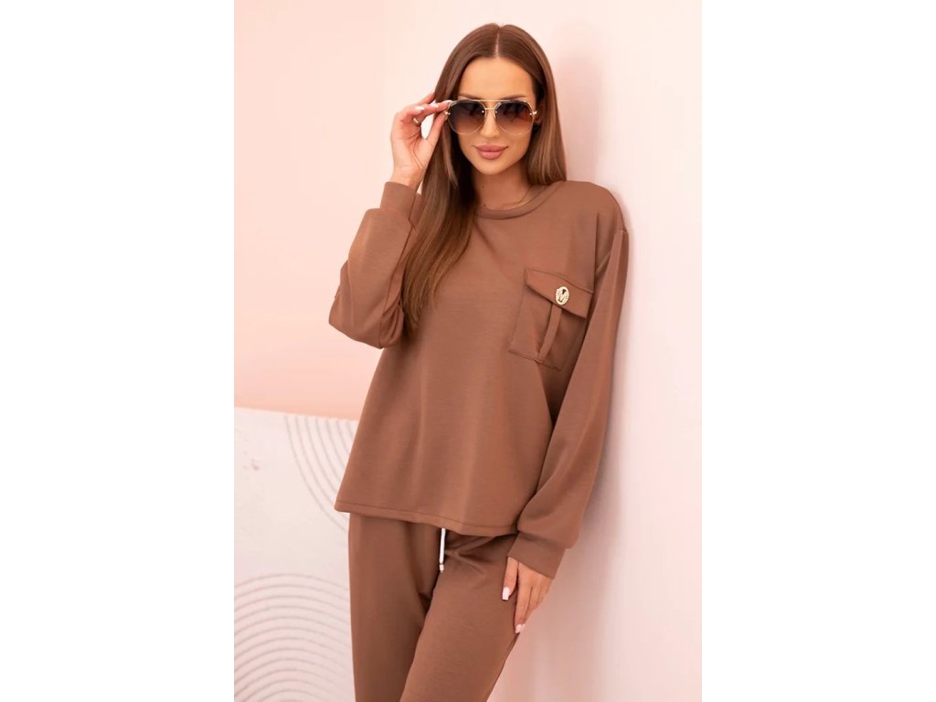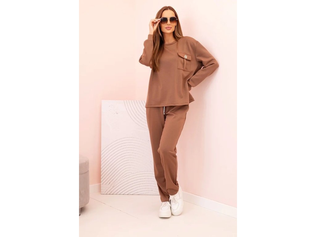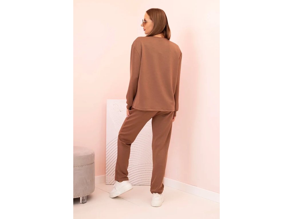 Komplet je vyrobený z príjemného elastického materiálu, ktorý je mäkký, pohodlný a vhodný na celodenné nosenie. Tento dámsky nohavicový komplet môžete nosiť ako modernú teplákovú súpravu – ideálnu na bežné nosenie do mesta, na výlety alebo na domácu pohodu.