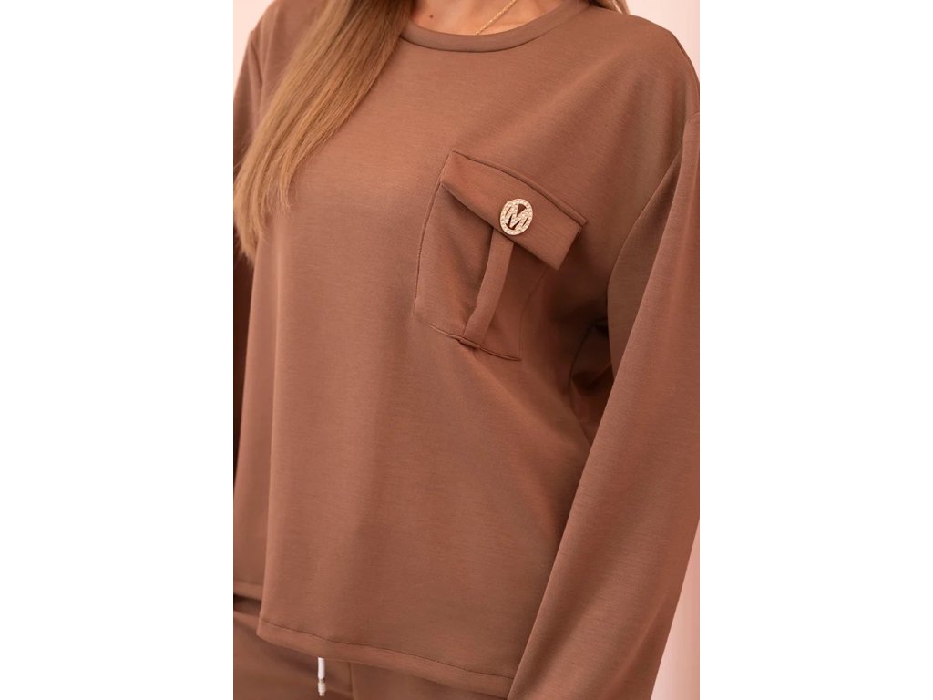 Dámsky komplet Cony je moderný a pohodlný outfit, ktorý spája štýl aj funkčnosť. Tvoria ho oversize mikina a široké nohavice, vďaka čomu pôsobí ležérne, no zároveň veľmi trendy.Mikina má širší strih s dlhými rukávmi, okrúhlym výstrihom a náprsným vreckom ozdobeným kovovou hviezdou, ktorá dodáva kompletu originálny detail. Nohavice so širokým strihom majú v páse všitú gumičku a viazanie na šnúrku, čo zaručuje komfort pri nosení. Dve praktické bočné vrecká ešte viac podčiarkujú ich praktickosť.