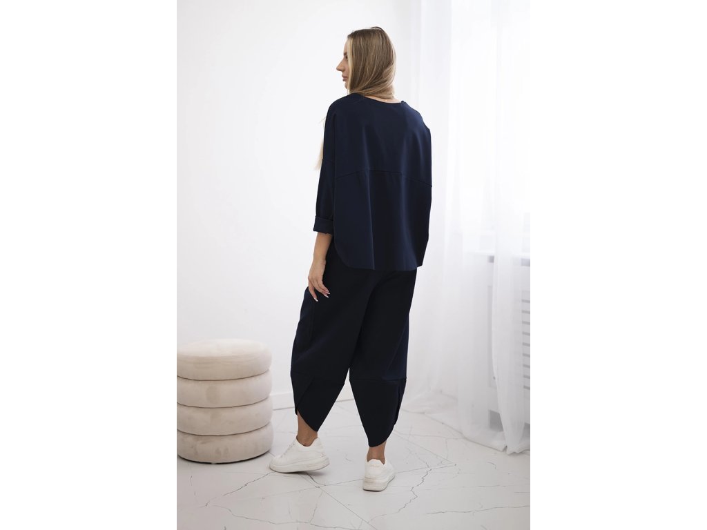 Objavte pohodlnú eleganciu s dámskym kompletom Astana, ktorý spája moderný dizajn a ležérny štýl. Tento dvojdielny komplet tvorí oversize top v asymetrickom strihu s prinechanými rukávmi, ktorý pôsobí vzdušne a originálne. Dopĺňajú ho nohavice v tulipánovom strihu s elastickou gumičkou v páse, ktoré sa dokonale prispôsobia postave a zároveň dodávajú outfitu jedinečný charakter.Materiál je elastický, príjemný k pokožke a pohodlný na nosenie, vďaka čomu je tento nohavicový komplet ideálny na každodenné využitie. Praktické bočné nakladané vrecká podčiarkujú uvoľnený mestský štýl a zvyšujú komfort.