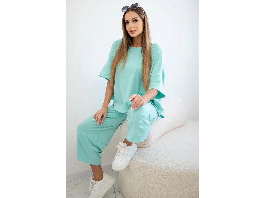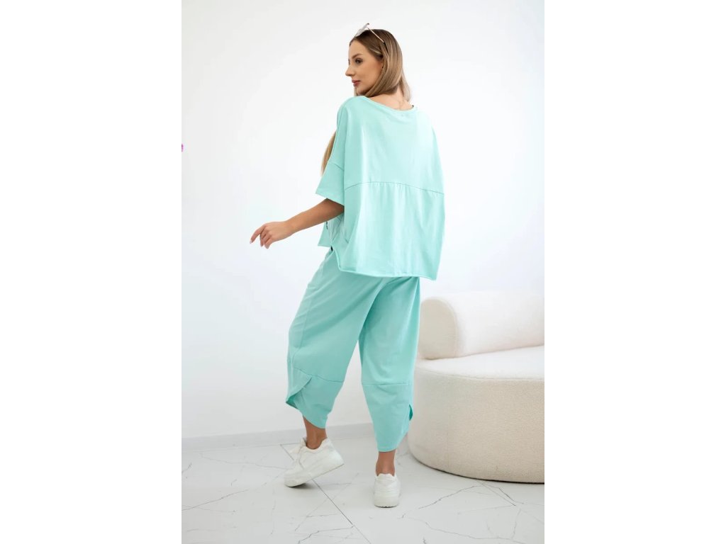 Dámsky letný komplet Mirita - predstavuje jedinečnú kombináciu štýlu, komfortu a originality. Tento dvojdielny nohavicový komplet si vás získa svojím jedinečným dizajnom a kvalitou materiálu. Bavlnená látka je nielen mäkká a príjemná na dotyk, ale aj krásne vyzerá. Top je dokonalým kúskom oblečenia na každý deň. Môžete ho nosiť samostatne, alebo skombinovať s inými kusmi oblečenia z vášho šatníka. Bude sa hodiť šortkám, alebo džínsom, čím vytvoríte ďalší mimoriadne štýlový outfit. Nohavice v neopozeranom dizajne sú dokonalým doplnkom súpravy. Ich voľný strih umožňuje voľnosť pohybu, vďaka čomu sú nielen štýlové, ale aj veľmi pohodlné. Tak na čo ešte čakáte tu je zopár dôvodov prečo by ste si tento dámsky komplet nemali nechať újsť.Prečo si zamilujete komplet Mirita: