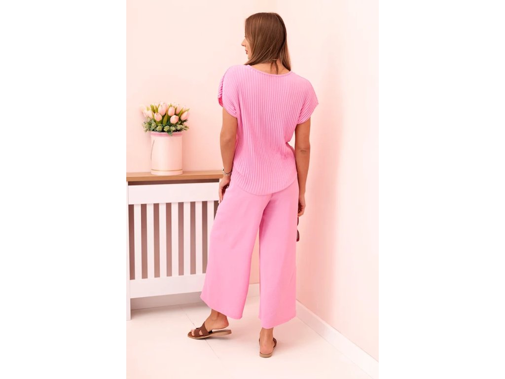 Dámsky letný nohavicový komplet Plisy cukríková ružová