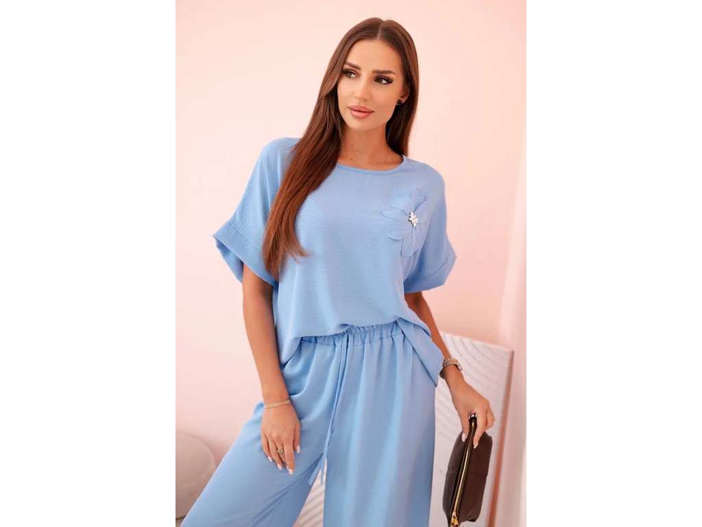 Dodajte svojmu letnému šatníku dávku elegancie, ľahkosti a štýlu. Dámsky dvojdielny komplet Recil je ideálnou voľbou pre každú ženu, ktorá hľadá spojenie komfortu a módneho vzhľadu počas teplých dní.Tento letný komplet pozostáva z dvoch perfektne zladených kúskov – širokých nohavíc s pohodlným elastickým pásom a štýlového topu s prinechanými rukávmi a ozdobným kvetom, ktorý okamžite pritiahne pozornosť. Vďaka ľahkému, chladivému materiálu sa komplet príjemne nosí a výborne sa hodí na bežné dni, dovolenku aj neformálne pracovné stretnutia.