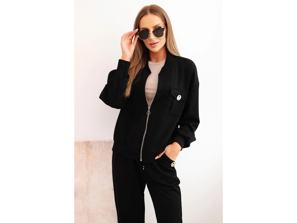 Doprajte si štýl a pohodlie v jednom s dámskym kompletom Foris, ktorý kombinuje moderný dizajn a ležérnu eleganciu. Tento nohavicový komplet pozostáva z bomber bundy so zapínaním na zips a voľných nohavíc s viazaním v páse a praktickou gumičkou na dolnom leme.