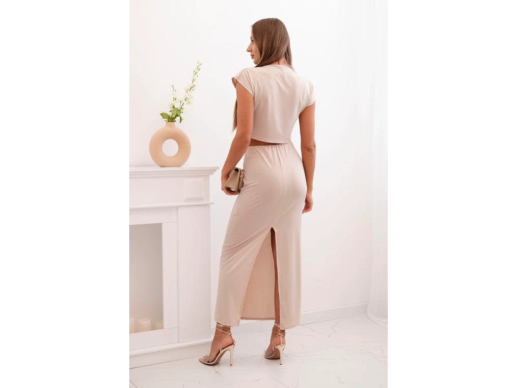 - Puzdrová sukňa s premyslenými detailmi - dlhý elegantný strih s pohodlnou gumičkou v páse, ktorá sa prispôsobí vašej postave- Odvážny vysoký rozparok na zadnej strane, ktorý dodáva klasickému strihu nádych zmyselnosti- Unikátny crop top so zlatou sponou na ramene - detail, ktorý vás odlíši od davu