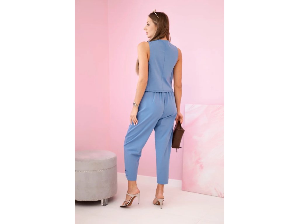 Elegantný nohavicový komplet Hreta džínsová modrá