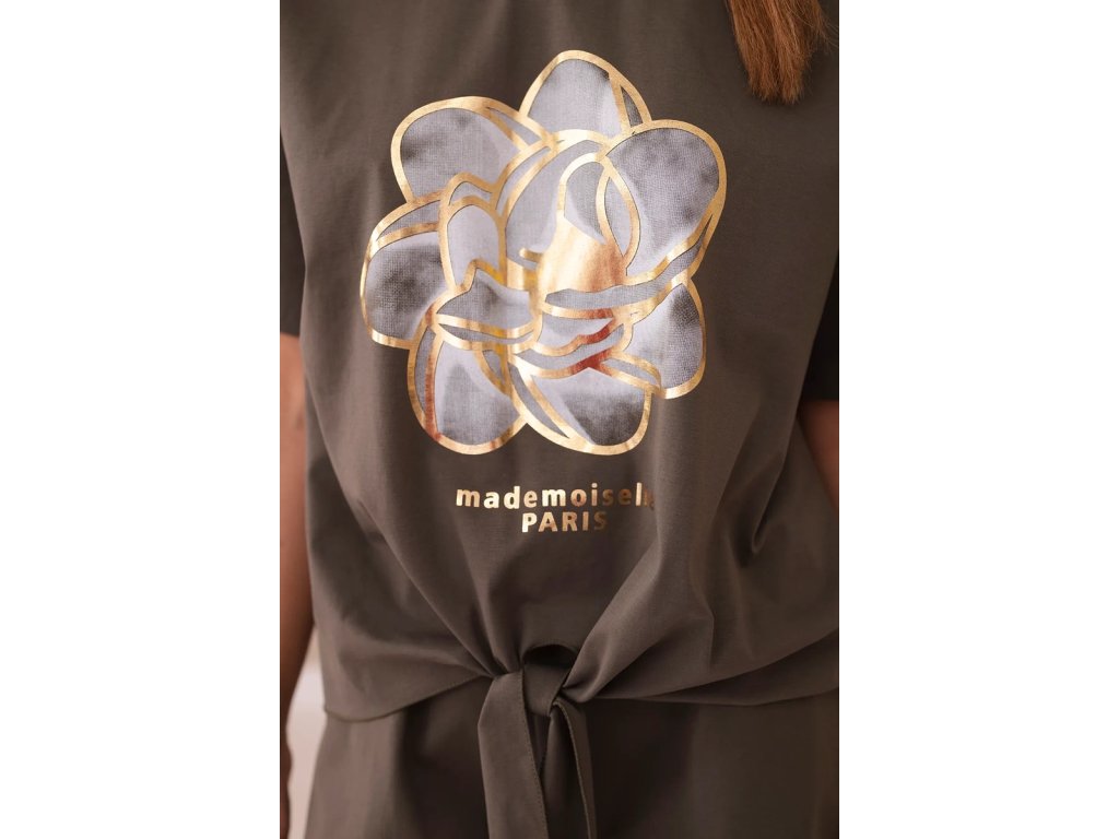 1. Štýlový dizajn: Šortky a top s viazaním na prednom diele vytvárajú dokonalú harmóniu štýlu a pohodlia.2. Unikátna zlatá potlač: Efektný kvetinový motív dodáva kompletu nádych luxusu a originality.