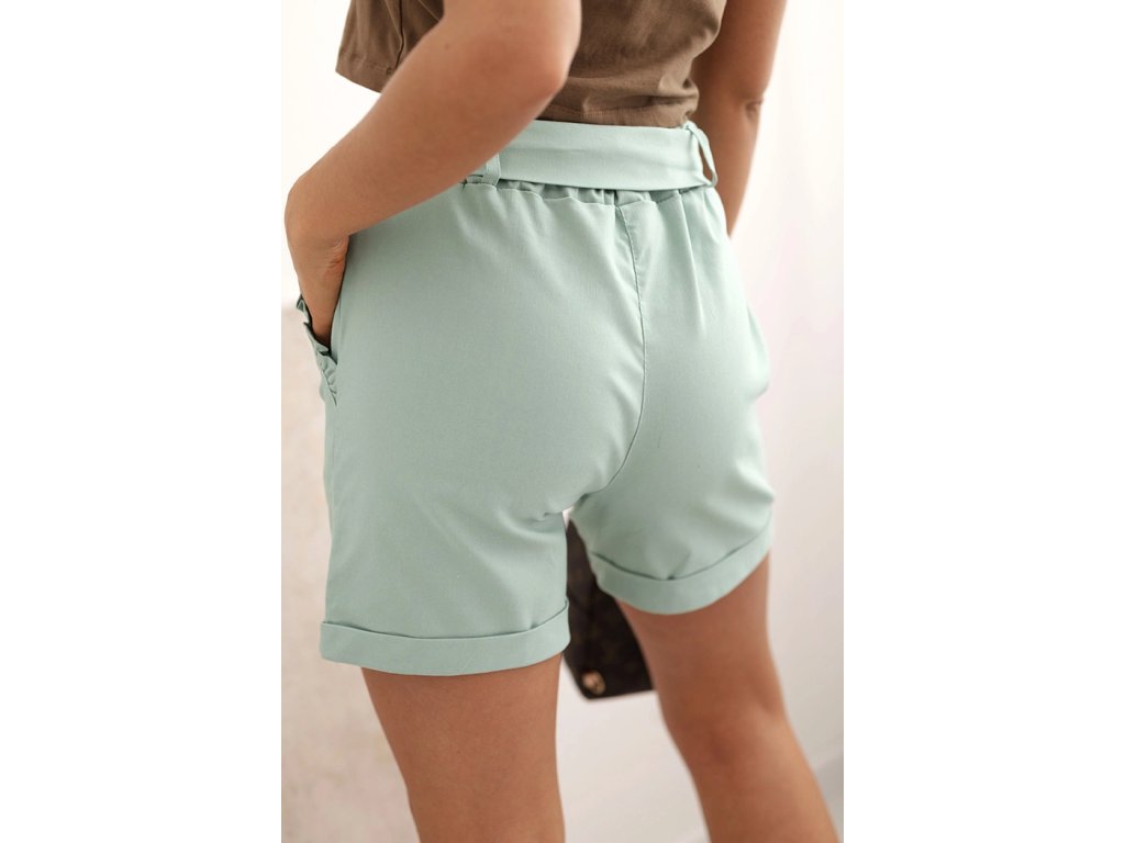 Dámske šortky s mašľou a volánmi tmavá mätová