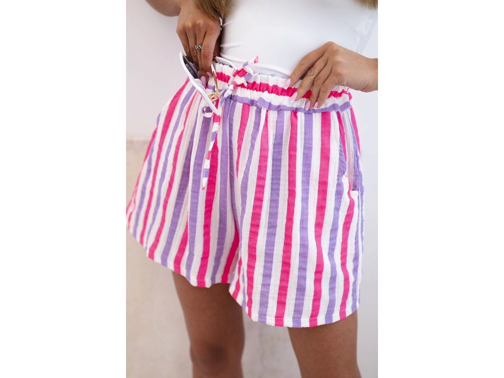 Pruhované dámske kraťasy Veron sú dokonalým kúskom na horúce letné dni. Tieto bavlnené dámske kraťasy zaujmú výrazným pruhovaným vzorom, ktorý dodá každému outfitu šmrnc. Dámske šortky majú pohodlný klasický strih s elastickým pásom a praktickou šnurovačkou, vďaka čomu sa skvele prispôsobia postave. Nechýbajú ani dve bočné vrecká pre ešte väčší komfort.