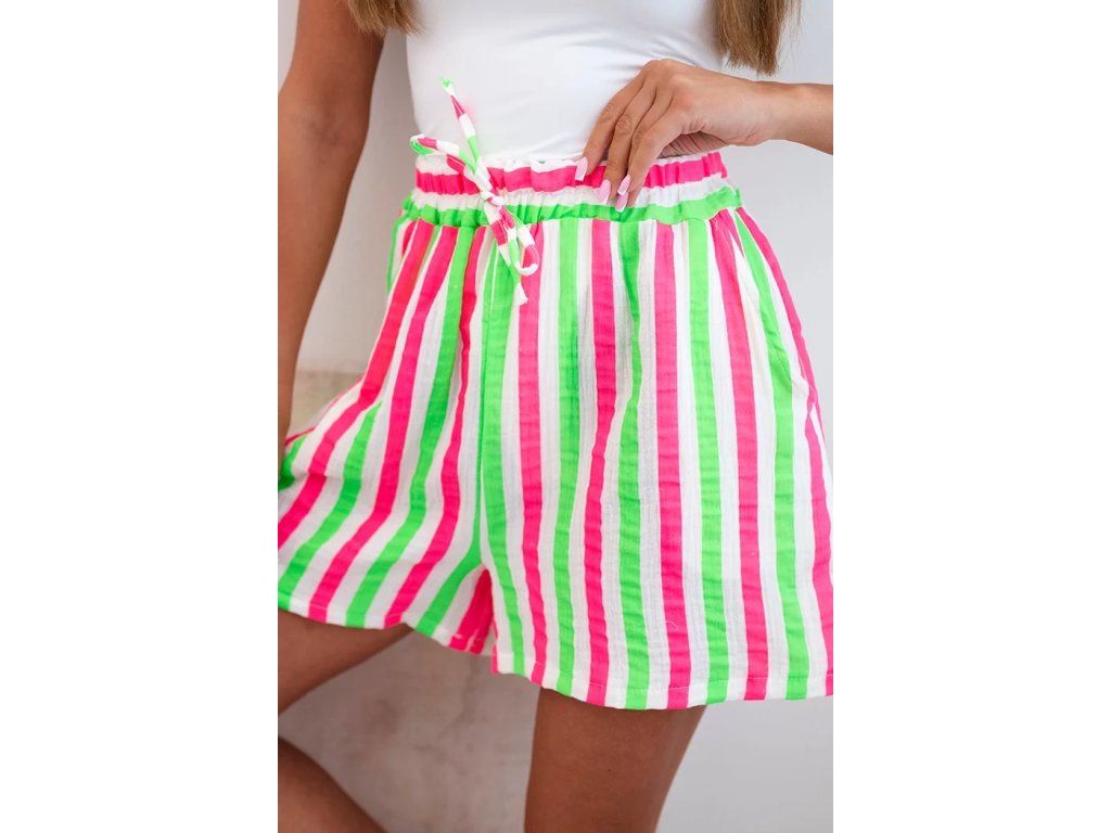 Pruhované dámske kraťasy Veron sú dokonalým kúskom na horúce letné dni. Tieto bavlnené dámske kraťasy zaujmú výrazným pruhovaným vzorom, ktorý dodá každému outfitu šmrnc. Dámske šortky majú pohodlný klasický strih s elastickým pásom a praktickou šnurovačkou, vďaka čomu sa skvele prispôsobia postave. Nechýbajú ani dve bočné vrecká pre ešte väčší komfort.
