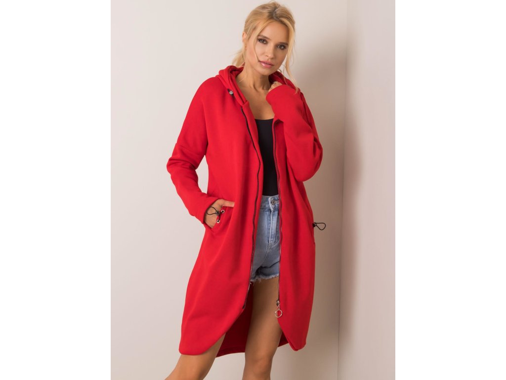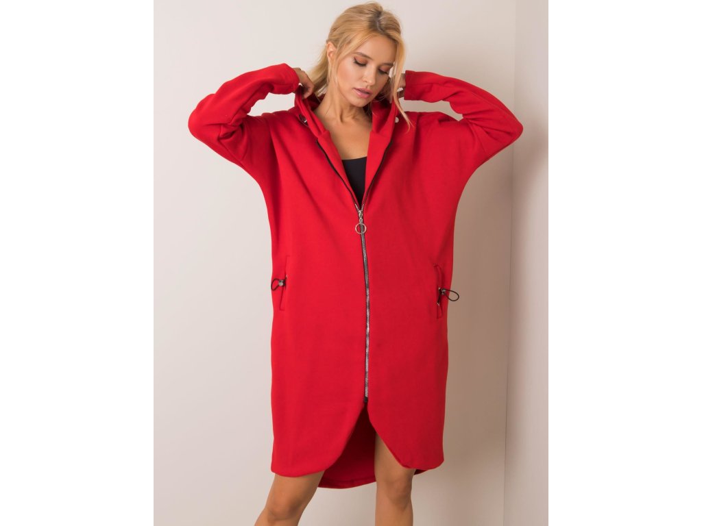 Exkuzívna dámska mikina na zips s kapucňou. Dizajn mikiny ja minimalistický, moderný a nadčasový ktorý krásne vynikne v použitej červenej farbe. Dĺžka mikiny siaha až ku kolenám. Dolný lem je zaoblený a asymetricky strihaný. Mikina je šitá v oversize strihu so zapracovanými vreckami a výrazným metalovým zipsom. Jednoduché prevedenie podčiarkujú originálne detaily v podobe stahujúcich gumičiek, ktoré podčiarkujú jej moderný dizajn. Tento absolútne najmódnejší model dámskej mikiny na zips bez problémov zladíte do množstva štýlových outfitov keď sa chcete cítiť ležérne a pohodlne.