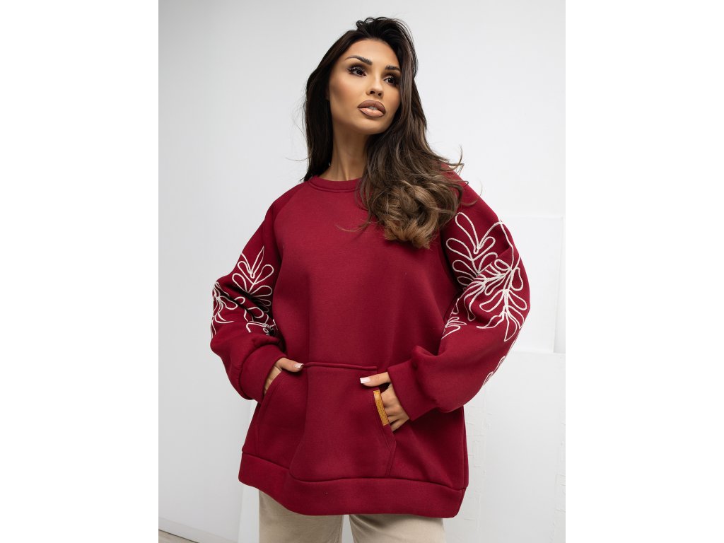 dámska mikina bez kapucne Ornament bordová- štýlová oversize mikina s potlačou