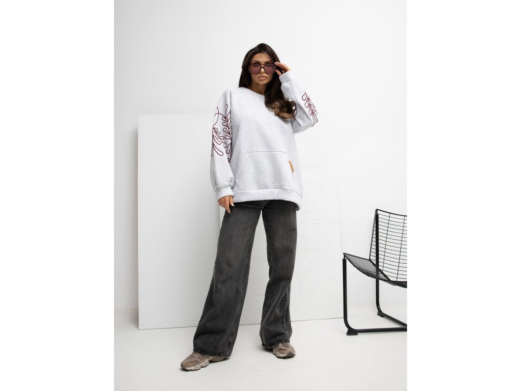 dámska mikina bez kapucne Ornament šedá- štýlová oversize mikina s potlačou