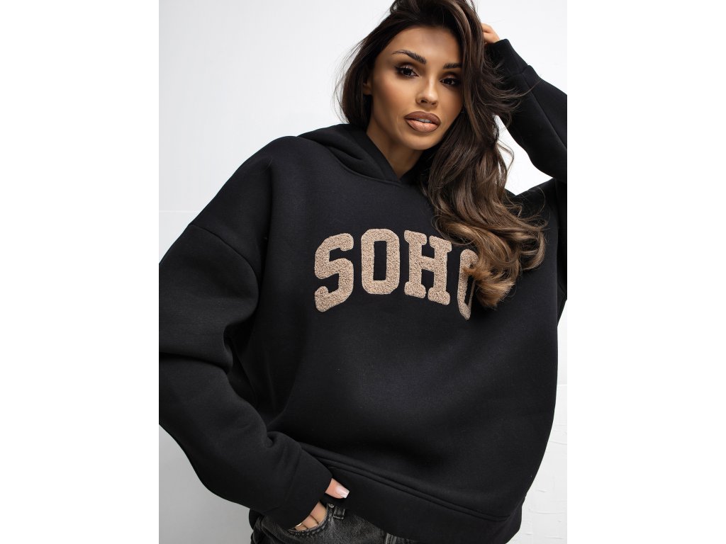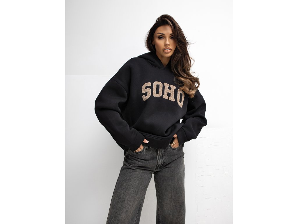 Dámska mikina s kapucňou Soho je moderný a pohodlný kúsok, ktorý nesmie chýbať vo vašom šatníku. Ide o klasickú dámsku mikinu s kapucňou v obľúbenom oversize strihu a v dĺžke do pása, ktorá pôsobí štýlovo, mladistvo a ľahko sa kombinuje s rôznymi outfitmi. Predný diel zdobí trendová potlač, ktorá dodáva mikine jedinečný a mestský charakter.Mikina je vyrobená z príjemného, mäkkého a kvalitného bavlneného materiálu, ktorý poskytuje pohodlie počas celého dňa. Vďaka svojmu univerzálnemu vzhľadu sa hodí k teplákom aj k rifliam, čo z nej robí ideálny kúsok na bežné nosenie.