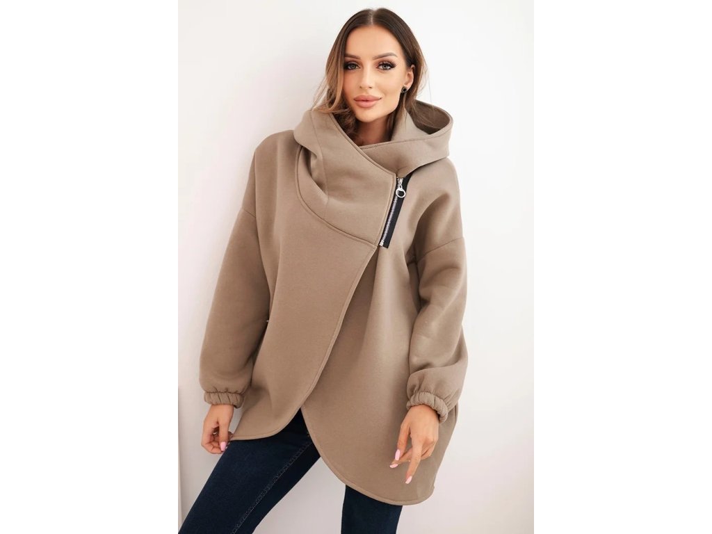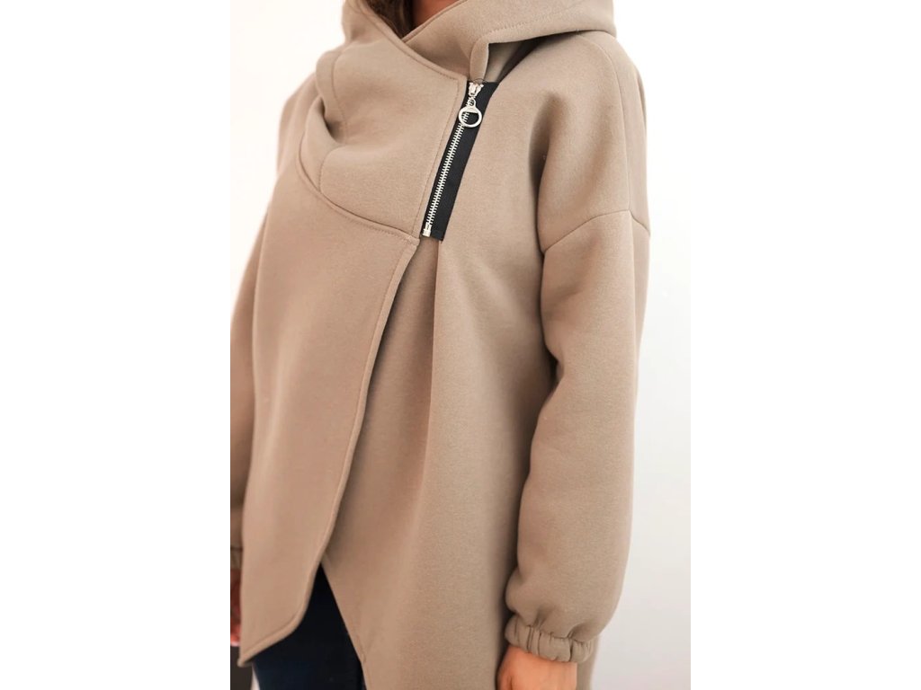 Buďte štýlová aj počas chladných dní s dámskou mikinou Glosy. Táto moderná oversize mikina vyniká svojím netradičným strihom – má krátke šikmé zapínanie na zips, ktoré jej dodáva jedinečný charakter. Dolný lem je strihaný do jemného oblúka, čo pôsobí žensky a elegantne zároveň.