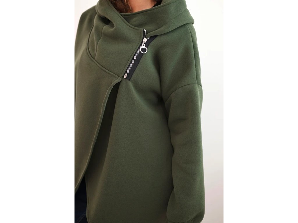 Buďte štýlová aj počas chladných dní s dámskou mikinou Glosy. Táto moderná oversize mikina vyniká svojím netradičným strihom – má krátke šikmé zapínanie na zips, ktoré jej dodáva jedinečný charakter. Dolný lem je strihaný do jemného oblúka, čo pôsobí žensky a elegantne zároveň.