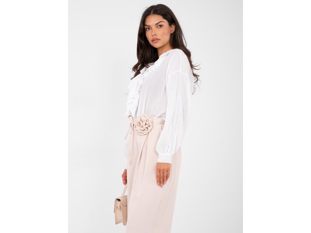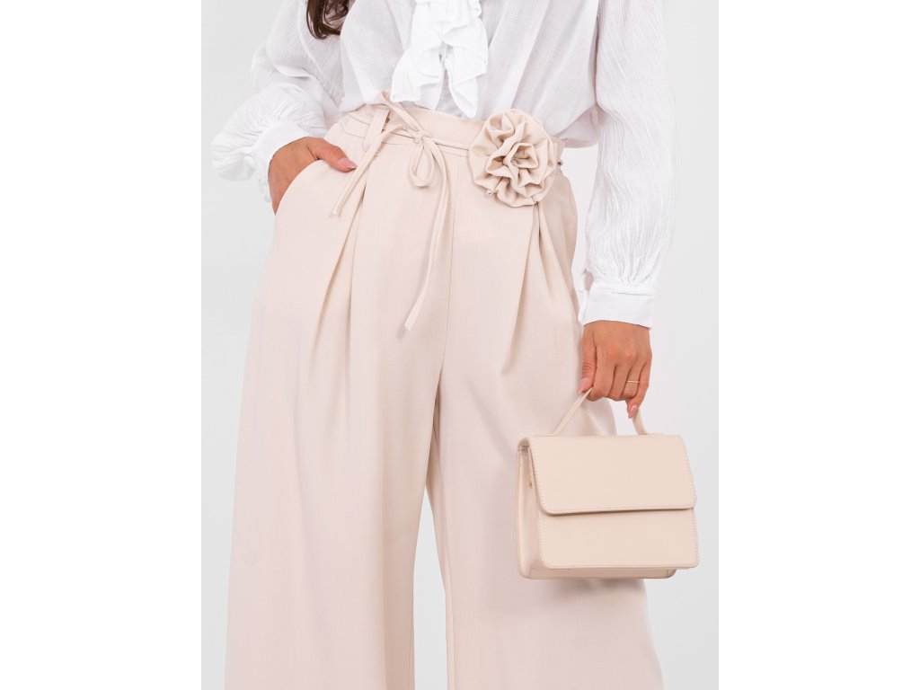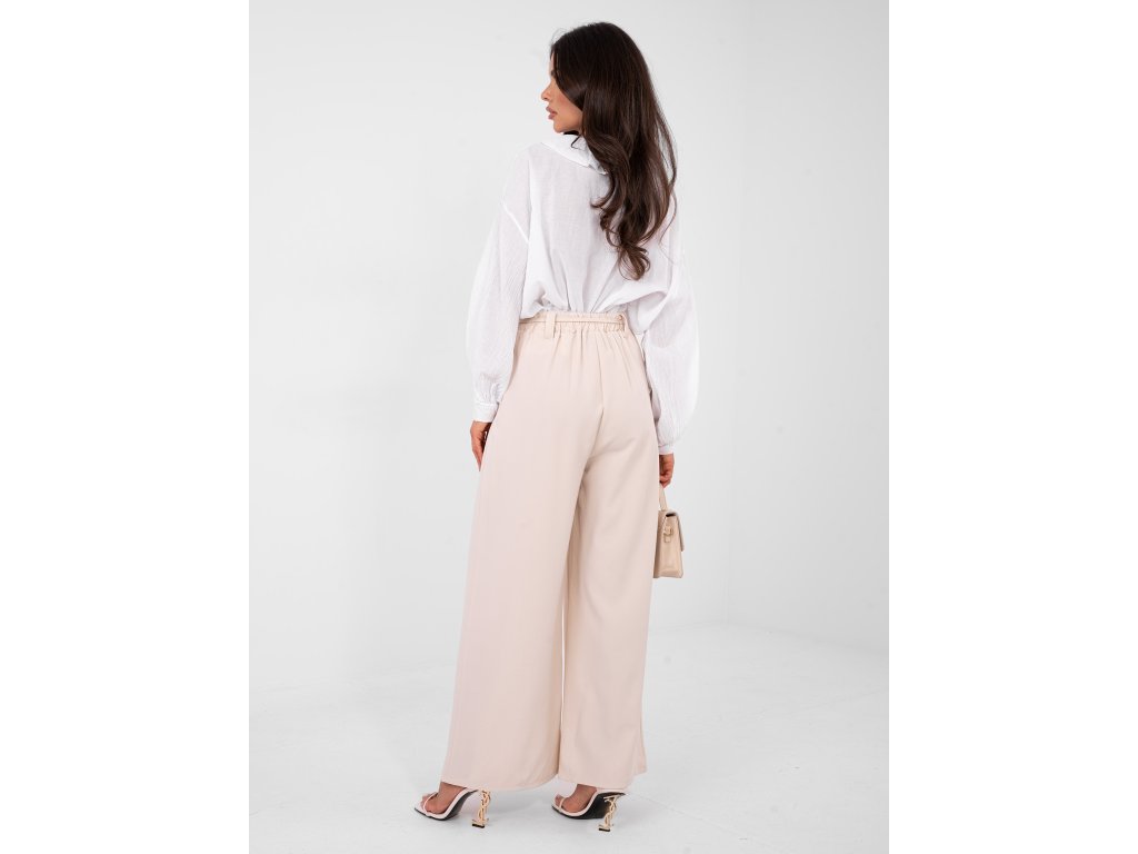 Dámske elegantné nohavice Elison - béžové široké nohavice s vysokým pásom