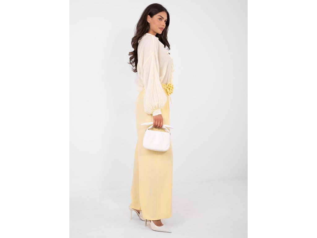 Dámske elegantné nohavice Elison - žlté široké nohavice s vysokým pásom