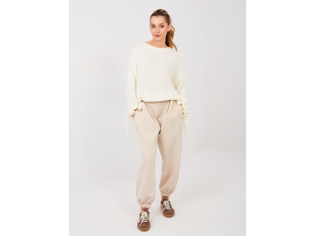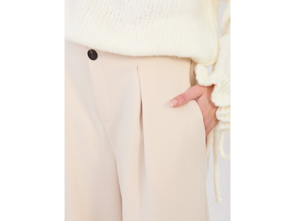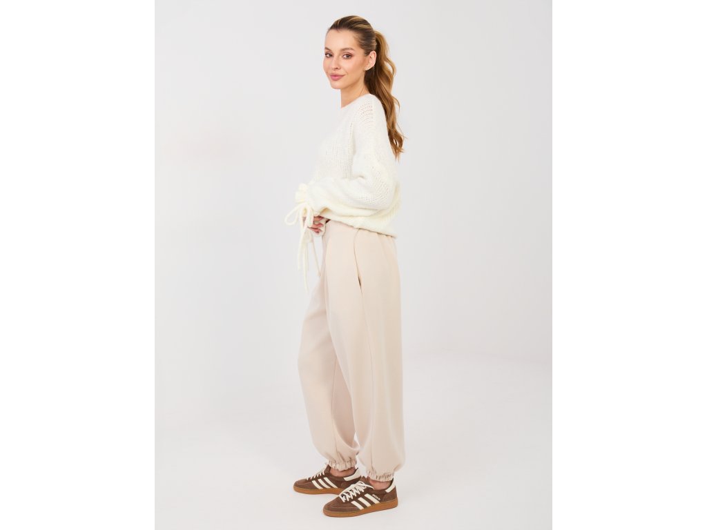 Dámske nohavice Fijis sú ideálnym spojením elegancie a pohodlia. Zaujmú originálnym balónovým strihom a príjemne mäkkým materiálom, ktorý na dotyk pripomína teplákovinu. Nohavice majú dĺžku po členky a spodný lem je stiahnutý gumičkou, vďaka čomu pôsobia moderne a štýlovo.Pás na gumičku so zapínaním na jeden gombík dopĺňajú záševky, ktoré krásne tvarujú postavu a dodávajú nohaviciam elegantný vzhľad. Dve bočné vrecká zvyšujú praktickosť a komfort pri nosení. Dámske nohavice Fijis sú vhodné na bežné nosenie do práce aj na voľný časa ľahko ich zakomponujete do elegantných aj casual outfitov.