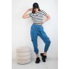 Dámske nohavice s ozdobnými trakmi Enowa džínsová modrá