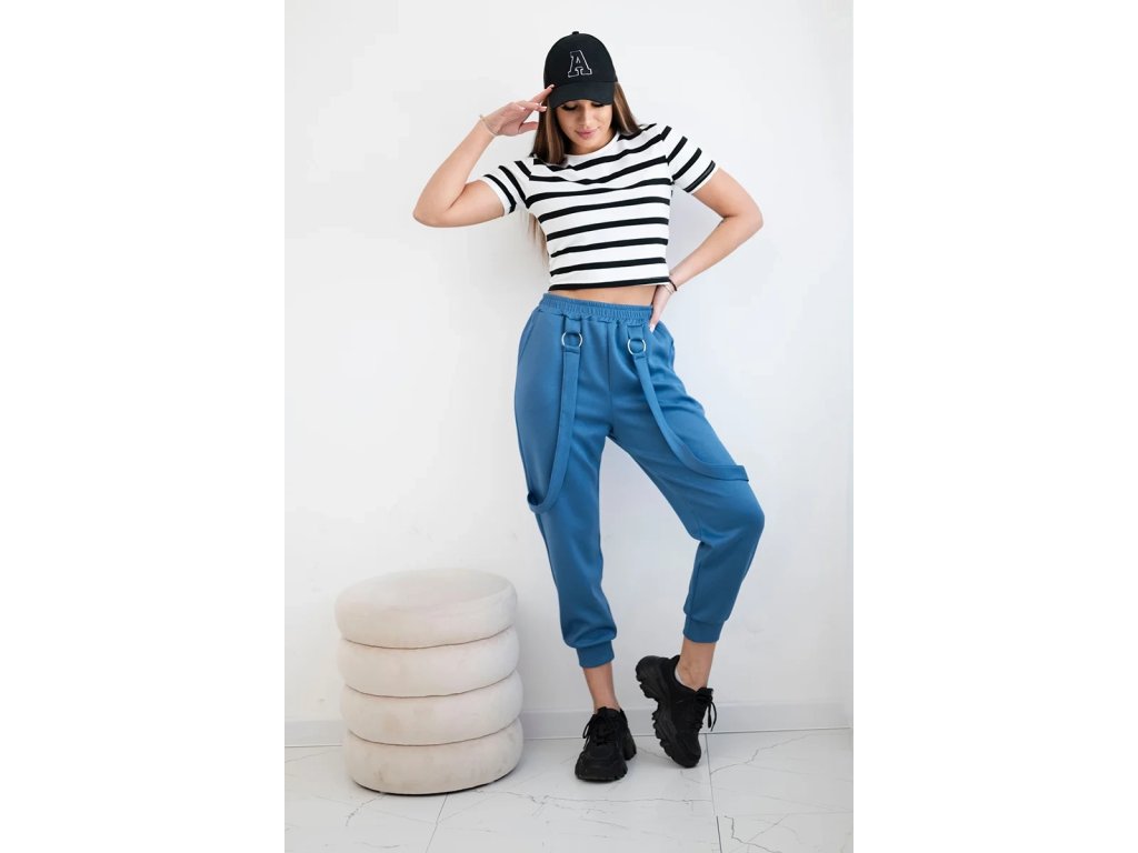 Dámske nohavice s ozdobnými trakmi Enowa džínsová modrá
